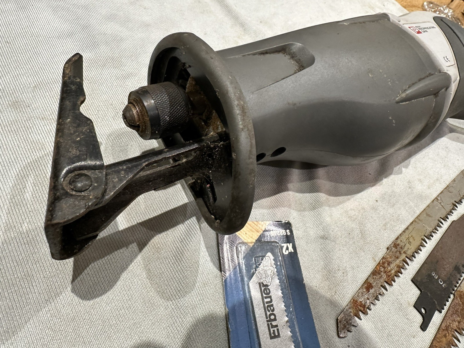 This is a Performance Power Reciprocating Saw which came from B&Q and has been a great tool for cutting where a jigsaw or circular saw cant get and has been used for cutting both wood and metal coated insulated panels – hence the metal blades (unused ones that were left over). It is a comfortable saw to use with a slow start which takes the kick out of it and the fwd guide can be positioned forward and backward to suit the job requirements. 600 Watt motor so well capable of a days work. The chuck is a twist release which means toolless blade changing - though best to unplug it before geting your fingers near the sharp end! As it is used it will show signs of normal wear and tear but there is no significant damage. Hopefully the pictures describe it – I’ll answer any questions I can but viewing is recommended – I am no expert. Collection and any trial (WR6 – halfway between Hereford and Worcester) is welcome – happy to post (1kg) and I can deliver locally if that helps. Please check my other listings which include a variety of other working tools and odds and ends – I am happy to combine to reduce postage cost and arrange shipment anywhere - thanks for looking.