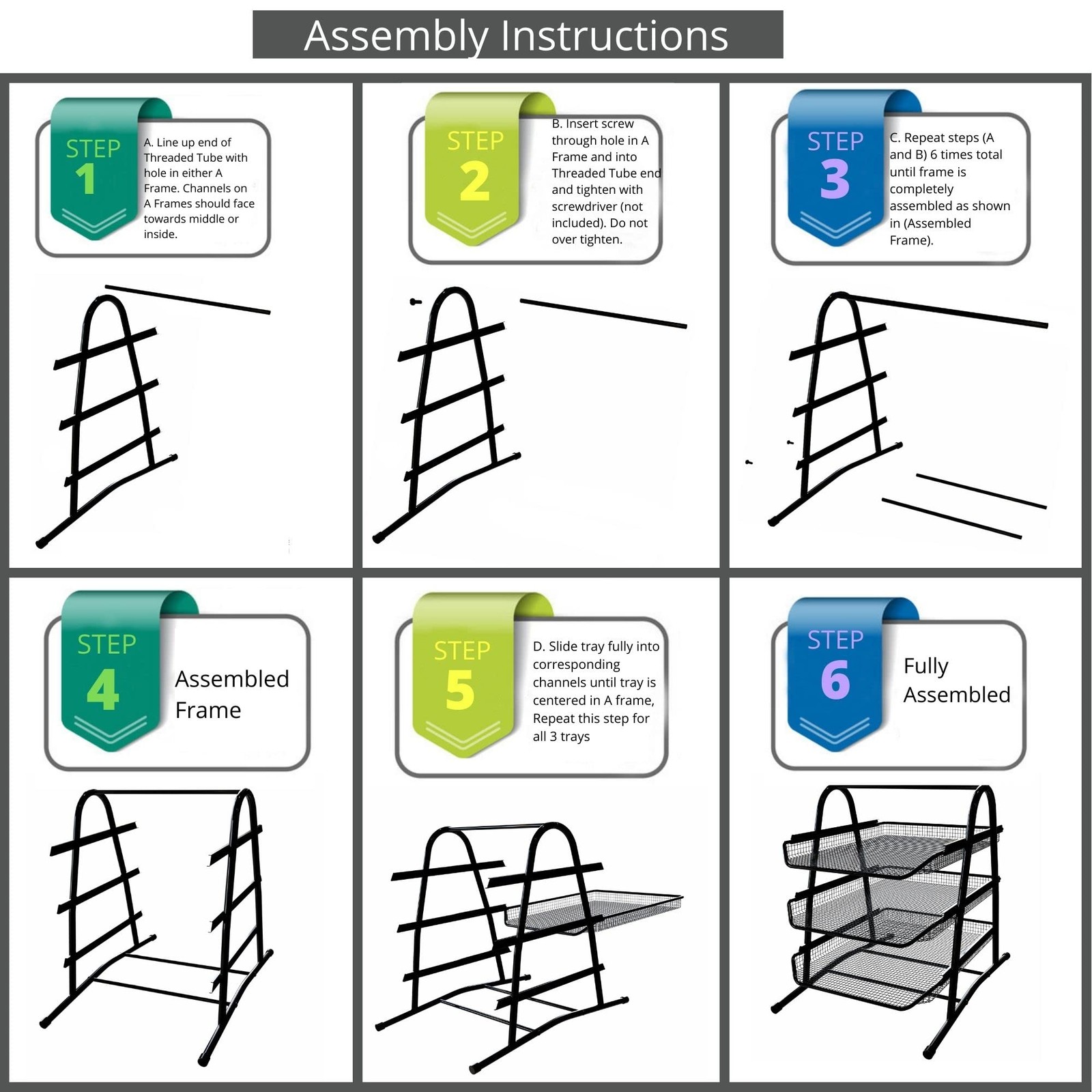 Save space and improve work efficiency using Performore’s 3-Tier Document Tray Organizer! Just by having this file stand, you can organize your desk at any time. Three metal meshes in the vertical layer provide enough space to accommodate important documents. Every layer of metal mesh is pulled out smoothly, it is very convenient. Unlike other paper trays, Performore’s 3-Tier Stackable Paper Tray Organizer is made from high quality metal mesh and reinforced with a solid steel frame that makes it have long-lasting strength and reliable performance. W H A T Y O U W I L L G E T PRODUCT SPECIFICATIONS: Condition: 100% Brand new Material : Metal Color : Black Dimension: 10.4” H x 11.8” W x 13,8” L with 2 inches for each tray Quantity: 3 Trays per Set PRODUCT FEATURES: The paper tray desktop organizer has rubber caps for feet to prevent scratches on your desk, no-edge blank design, safer and more beautiful. Stackable design allows you to stack them together or put them in different places separately, making your desktop clean and tidy. This multi-functional design allows this literature rack to hold magazines, files, catalogs, newspapers, and much more. By displaying important documents and binders vertically for quick selection, it makes the messy work on the desktop easy. Black mesh construction with powder coat finish making it stylish and elegant, not only a good solution for organizing desktop accessories, but also a nice decoration, perfect for home, office and school. The installation can be completed in minutes, very easy to assemble! 100% SATISFACTION GUARANTEE Buy with confidence! We stand by our products and offer a 30-day money-back/replacement guarantee! 3-Tier Stackable Tray Organizer – Great for desk storage and hold legal-size paper, folders, binders, stationary and notebooks. The size is approximately 14 x 12 x 10.5 inch ( L x W x H) in total, 2 inches for each tray. High Quality Tray Organizer – Our 3-Tier Stackable Paper Tray Organizer is made from high quality metal mesh and reinforced with a solid steel frame that makes it have long-lasting strength and reliable performance. Sturdy and Durable – The triple file tray organizer has a sturdy structure and can hold multiple textbooks, binders, documents, loose paper, etc. All screws are metal threaded; no plastic fasteners, which helps provide a solid base to hold your important paperwork. Easy to Assemble – It can be assembled with screws and a simple screwdriver, and it can be easily assembled in 3-5 minutes to get a perfect desktop manager. The tray organizer is made of lightweight black metal mesh construction and an environmental powder coat to prevent rust,or fade and is more sturdy and durable. Space Saver – Maximize the use of your vertical space and keep your space organized and clutter free. This paper tray organizer, with brief and compact construction, is solid enough for your office file and helps you use your home or office space more efficiently. It is very suitable for storing legal-size paper, folders, binders, stationery and notebooks.