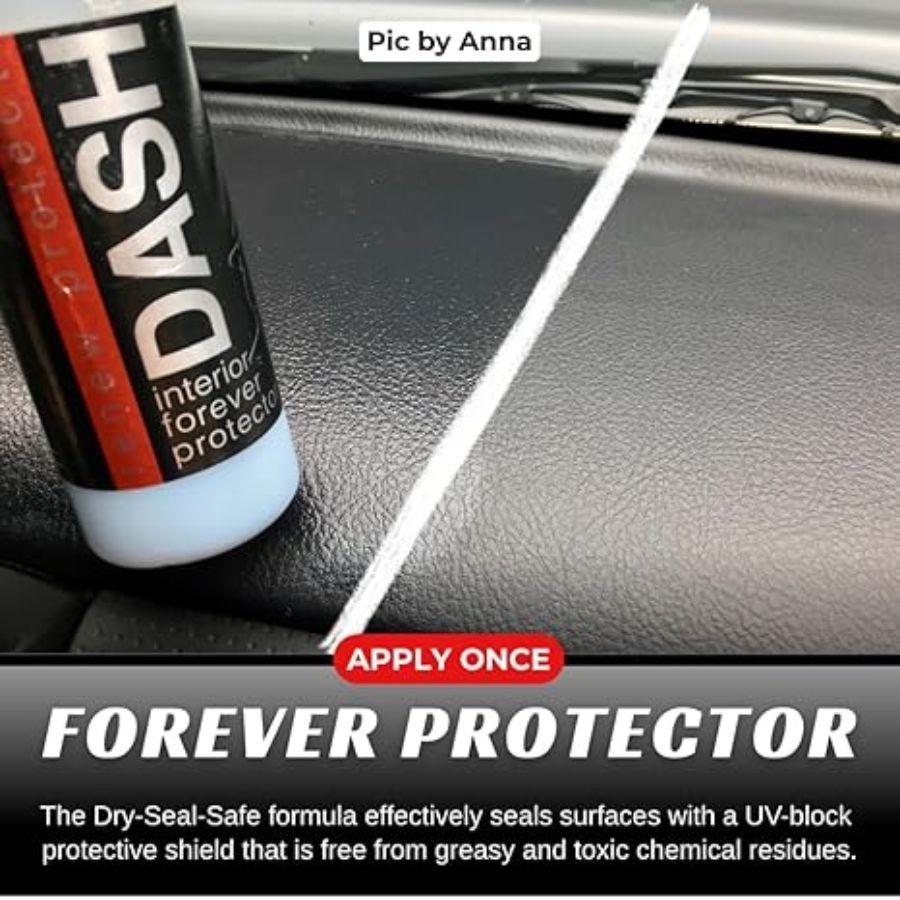 About this item The Only Ceramic-Hybrid Formula: Experience unparalleled interior protection with our permanent protectant, utilizing advanced nano-ceramic technology for complete defense against UV fading and cracking. Comprehensive Color Restoration: Completely renew interior surfaces with our 100% color restorer, designed to revitalize faded plastics, vinyl, floor mats, even steering wheels, and coated leather seats for a vibrant look. Permanent Protection: Benefit from a protective solution free of toxic chemical greasy residues commonly found in other products. Our Dry-Seal-Safe formula effectively seals surfaces while ensuring a clean, non-greasy finish. Low-Glare UV Block: Maintain visual clarity and comfort with our innovative low-glare UV block, which protects your dashboard from damaging UV rays without hindering visibility. Effortless Maintenance with Sticky Dash Repair: Eliminate sticky and greasy dashboard surfaces. Our protectant not only repairs and restores plastics but also simplifies cleaning—just a damp towel is all you will ever need for maintenance. NO MORE GREASY SURFACES IN YOUR CAR: Our product creates a Safe-Dry-Seal that is fully safe. The treatment will often increase the grip of saddles, steering, grips, foot pegs, and more, without any greasy emulsifiers or glycol, as found in typical protectants. Package Dimensions: 2 x 2 x 4 inches; 4.4 ounces