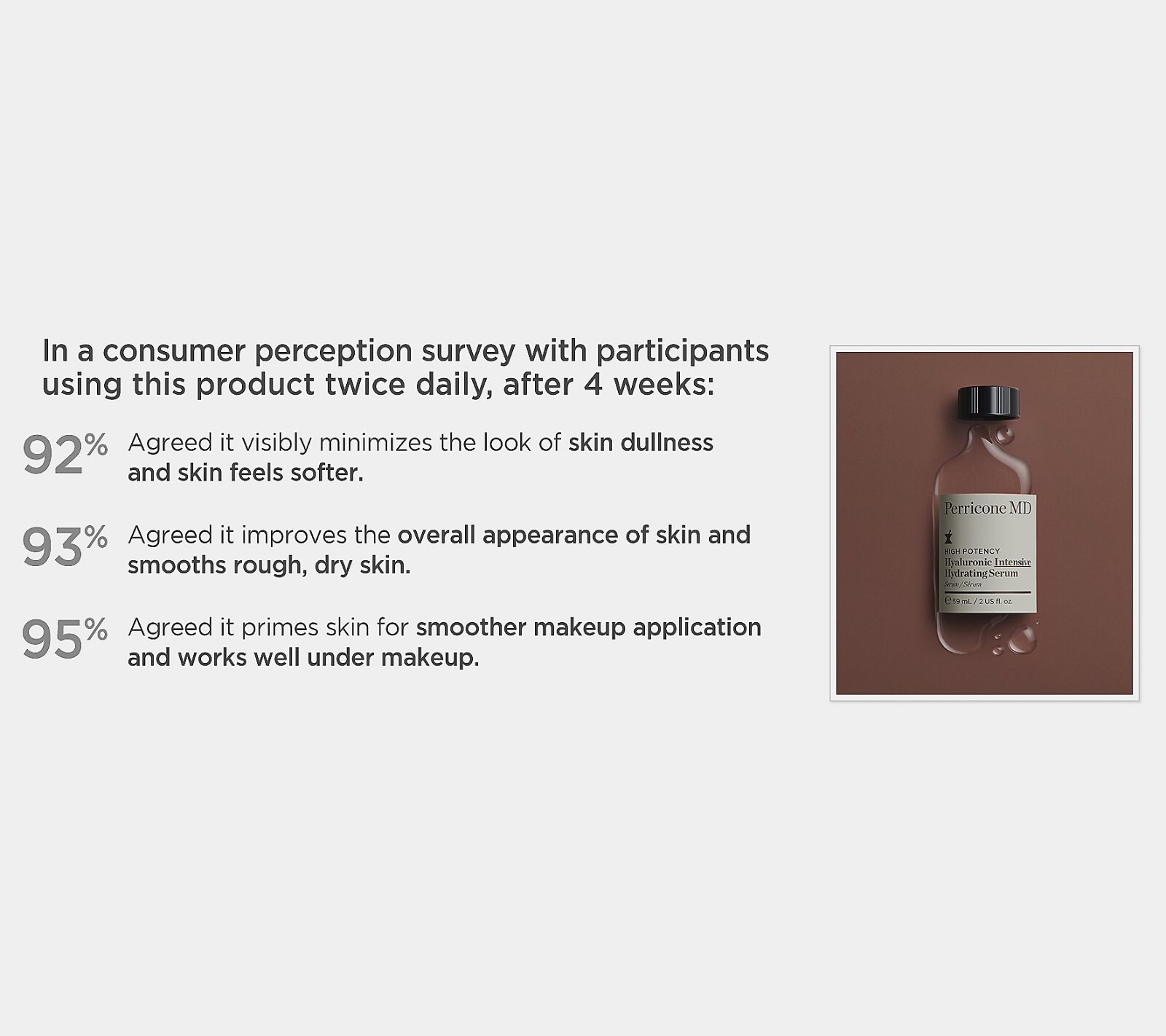 ** US STOCK - FAST & FREE SHIPPING ** Perricone MD High Potency Hyaluronic Intensive Hydrating Serum - 2oz NIB Containing peptides and ceramides, Perricone MD Hyaluronic Intensive Hydrating Serum also contains moisturizers known to hydrate skin. In an expert grader analysis with subjects using this product twice daily, after eight weeks, the serum was shown to diminish the look of fine lines and wrinkles and shown to improve the look of skin texture. In a consumer perception survey with participants using this product twice daily, after seven days: -- 87% agreed it smooths the look of rough, dry skin -- 83% agreed skin feels more supple -- 92% agreed it improves the overall appearance of skin -- 90% agreed skin feels softer How do I use it: After cleansing, massage onto damp face and neck using a gentle upward motion. Wait until fully absorbed and follow with moisturizer. Use morning and evening. From Perricone MD. Includes: 2-oz Hyaluronic Intensive Hydrating Serum Shipping This item is IN STOCK from warehouse in USA and ready to ship within 24 hours. We strive to make the shipping process as easy as possible. Most of our items ship out within 24-48 hours and take 3-8 days for delivery. If you have any questions about our shipping policy or delivery times please don't hesitate to contact us. We DO NOT ship to the following: PO BOX & APO/FPO Addresses Hawaii, Alaska, Puerto Rico, & Virgin Islands. We ship to the continental 48 US States Only.