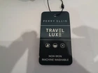 Perry Ellis Size 32W 30L TRAVEL LUXE Tan New Mens Flat Front Dress Pants -Style: TRAVEL LUXE, Natural Linen, 4AHB3301PS -Color: Core -Non iron -94 % Polyester 5% Rayon 1% Linen -Size: 32 Waist x 30 Length -Button, clip, and zipper closure -2 front and 2 rear pockets -Quarter top pockets -Rear pockets with button through closure -Waist size 32, actual waist is approximately 34 inches -Rise approximately 12 inches