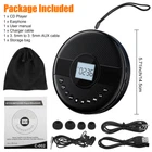 Product Feature π―π Stereo Speakers: Built-in dual stereo speakers , small and handy. It also can connect to the car's speak by AUX cable. (NOTE: only works with a 3.5mm AUX port , USB port is NOT supportable). π―π Backlit LCD: The portable CD player features a backlit display for easy use in dark environments. The larger LCD screen clearly shows information even in low light. π―π Compatible with CD, MP3, CD-RW, CD-R, and WMA formats. This car CD player features anti-shock protection , offering up to 40 seconds of anti-skip stability for smooth audio on the go. π―π Rechargeable CD Player: The personal CD player has a built-in 1500mAh battery , so you don't always need to plug it in while playing music. It's easy to carry anywhere. π―π Suitable for: With A-B repeat and playback speed adjustment functions, it's perfect for learning languages or singing. It's a great gift for loved ones, family, classmates, friends, kids, elders, or coworkers. Product Specification Type Portable Rechargeable CD Player Color Black Weight 370g Operating voltage 3.7V Power output 1W+1W DC conversion 16 Bits USB disk port USB jack Key lock switch Lock Key Charging voltage DC 5V/2A Audio sound 31.5Hz-16kHz+3dB Display screen Function display area CD signal-to-noise ratio β₯50dB Sampling frequency 44.1kHz Size 146(L) X146(W) x 33.5(H) mm Carry strap hole Lanyard location Internal speaker Built-in double horn Battery Lithium-ion polymer 3.7V/1500mah Power Source DC 5V/2A USB Type-c Charging Cable Supported disc formats MP3 disc, CD, CD-R, CD-RW, CD WMA Package Included β€οΈ 1 x CD Player β€οΈ 1 x Earphone β€οΈ 1 x User Manual β€οΈ 1 x Charger Cable β€οΈ 1 x 3. 5mm to 3. 5mm AUX Cable β€οΈ 1 x Storage Bag Location Descriptions To improve your buying experience and ensure fast delivery, Your order will be shipped from the warehouse located in either new jersey or california that is closest to your address. If you have any questions, Please contact us. Thank you for your support !