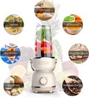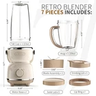 La Reveuse Personal Size Blender 300 Watts for Shakes Smoothies white Product Details Brand: La Reveuse Color: white Special Feature: Leather handle, Safety Lock, Retro style, Multiple Attachments, Single Serve Capacity: 17 Fluid Ounces Product Dimensions: 4.92"D x 4.92"W x 12.6"H MaterialWattage: Plastic300 watts Item WeightIs Dishwasher Safe: 3 PoundsYes RETRO COMPACT DESIGN - Retro-friendly design smoothie mixer,shaped like a flowing infinity symbol.Compact size easy to collect, space saving,fits nicely in the corner of your counter.Great size blender for office use VERSATILE - 300 watts smoothie blender with 17 oz cup,10 oz mug, BPA-free,can be used for blending,mixing,chopping,pureeing,grinding, multiple cup sizes make it easy to select the right size for what you need EFFICIENT - 4 leaves efficient stainless steel blade,strong enough to blend vegetables and fruits easily.Great for making smoothies,shakes, baby formula,morning protein drinks, dressing and sauces SIMPLE TO USE AND CLEAN - Easy operation switch with pulse feature.Thoughtful leather handle for easy movement of the blender base.Bottles are easy clean,dishwasher safe CONVENIENT TO GO CONCEPT - 2 cups with travel lid and flit-top lid,makes it easy to take on the road to the office,gym or class,in the car or in your bag.Considerate lip ring let you enjoy comfortable drinking after blending