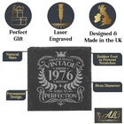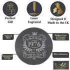 **Available to purchase glass and/or coaster personalised with custom name (please select from drop down option) at ADDITIONAL COST - If selected 'no' to add personalised name, glass and/or coaster will come with standard Vintage design only** Vintage 1976 Engraved Whiskey Glass and/or Natural Slate Coaster 50th Birthday Gift Set ππ D E S C R I P T I O N ππ - Engraved with a Vintage 1976 Edition Design that never goes out of date no matter how old they are meaning that the Glass or Coaster can be used Year after Year. - Design is laser engraved and permanently etched on the glass therefore dishwasher safe, a gift that they will cherish forever! - The Slate Coaster has soft padded feet ensuring that the slate coaster won't scratch surfaces. - Coaster is natural slate and has individually cut edges giving each mat a rustic and unique look - Whiskey Glass has a heavy base and Rolled Rim which helps to protect against chipping. - The Whisky Glass and Coaster is an Amazing 50th Birthday Gift, a special Keepsake present for anyone turning 50. PLEASE NOTE PICTURES ARE TO CLEARLY SHOW DESIGN - ENGRAVING CUTS INTO THE GLASS AND HOLDS NO COLOUR AND ON SLATE WILL SHOW IN LIGHT GREY ** IF YOU ARE WANTING TO PURCHASE BOTH GLASS AND COASTER YOU WILL NEED TO ENSURE YOU CHOOSE CORRECT DROPDOWN OPTION ** ------------------------------------------------------- π P E R S O N A L I S E π - If selected 'yes' to add personalised name, please state in the personalisation box which name you would like engraved on the glass. - Please note all other text and design will remain the same. - If selected 'no' to add personalised name, glass and/or coaster will come with standard Vintage design only - Make sure to provide all necessary information (Please ensure the correct spelling is given as these cannot be changed after they are made) - Send us a message if you have any queries or if you require a different year engraved on the glass. --------------------------------------------------------------- π CONTENTS π Available to buy: - Whisky Glass on its own - Slate Coaster on its own (choice of Round or Square) - As a set with the Whisky Glass and matching Slate Coaster (choice of Round or Square) ---------------------------------------------------------------------- β¨ S I Z E S β¨ Whisky Glass has a 305ml Capacity is 9.5cm Tall with an 8cm Diameter Square Coaster is 10cm x 10cm Round Coaster has a 10cm Diameter ----------------------------------------------------------------- π¦S H I P P I N Gπ¦ Our processing time to make & dispatch your order is 1 - 2 business day. Choose your shipping type at checkout: 2nd Class: 2-4 working days 1st Class: 1-2 working days Express: Next day guaranteed (Monday β Friday) International Tracked: 5-12 working days All times are estimated times only. 50th Birthday Gifts for Him | Personalised Engraved Gifts