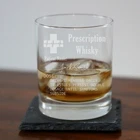 Engraved Personalised Prescription Whisky Glass PLEASE NOTE SPELLING OF WHISKY (SCOTTISH WAY) - IF YOU REQUIRE WHISKEY, PLEASE ADD TO MESSAGE ππ D E S C R I P T I O N ππ - Prescription Whisky for the 'patient' A daily dose of Whisky - Just what the doctor ordered! - Engraved whisky Glass Funny Novelty Whisky Tumbler Glass etched with custom name is the perfect gift for all occasions and for all recipients! - This glass will bring a smile to their face every time they use it! - The Designs are laser engraved onto the Glass ensuring the design is permanent and dishwasher safe - a gift they can cherish forever and use year after year. - Great gift idea for Birthdays, Anniversary's, Good Luck Gifts, Celebration Gifts, New Home Gifts, Housewarming Gifts, Christmas Gifts, Just Because and more! - The Slate Coaster has soft padded feet ensuring that the slate coaster won't scratch surfaces. - Coaster is natural slate and has individually cut edges giving each mat a rustic and unique look. PLEASE NOTE PICTURES ARE TO CLEARLY SHOW DESIGN - TEXT SIZE WILL VARY DEPENDING ON MESSAGE/NAME - ENGRAVING CUTS INTO THE GLASS AND HOLDS NO COLOUR AND ON SLATE WILL SHOW IN LIGHT GREY ** IF YOU ARE WANTING TO PURCHASE BOTH GLASS AND COASTER YOU WILL NEED TO ENSURE YOU CHOOSE CORRECT DROPDOWN OPTION ** -------------------------------------------------------------------------------------------------------------------------- π P E R S O N A L I S E π - Please let us know what name you would like for the patient (Note - All other design will remain the same) - Make sure to provide all necessary information (Please ensure the correct spelling is given as these cannot be changed after they are made) - Send us a message if you have any queries! ---------------------------------------------------------------- π CONTENTS π Available to buy: - Glass on its own - Coaster on its own (choice of Slate Round or Slate Square or Printed Coaster) - As a set with the Glass and Matching Coaster (choice of Slate Round or Slate Square or Printed Coaster) ----------------------------------------------------------------- β¨ S I Z E S β¨ Choice of 3 Glass Styles and Sizes: - Whisky 305ml - Small Tondo 405ml - Small Tallo 345ml Printed Coaster is 9cm x 9cm Square Coaster is 10cm x 10cm Round Coaster has a 10cm Diameter ----------------------------------------------------------------- π¦S H I P P I N Gπ¦ Our processing time to make & dispatch your order is 1 - 2 business day. Choose your shipping type at checkout: 2nd Class: 2-4 working days 1st Class: 1-2 working days Express: Next day guaranteed (Monday β Friday) International Tracked: 5-12 working days All times are estimated times only.