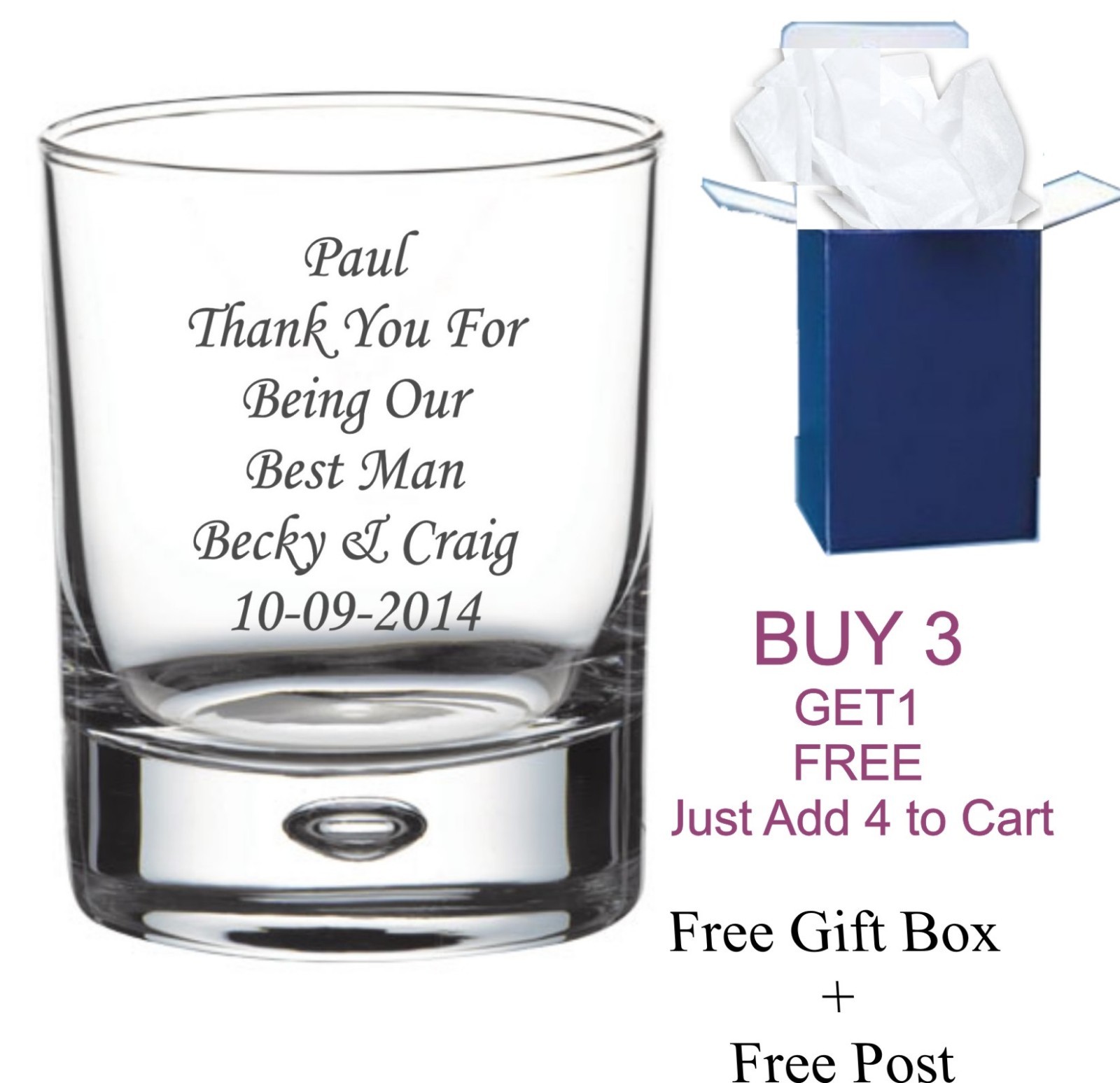 Personalised Engraved Whiskey Glass tumbler father of the bride, Groom gifts Engraved Gift For Any Occasion 8 fl oz Text Allowance 5 x lines 15 characters inc spaces To be sent at checkout or via contact the seller message only Please Send your details, as Line 1, Line 2, Line 3 etc, to Line 6, if you want your text in any specific way, and this is because how you send your text is not always the way we receive it, through the system, so therefore to ensure the layout it correct then please send as above, failing this we will set as we can to the text allowance and glass. Text colour no colour just engraved into glass Please note that each glass has its own uniqueness therefore you may find a manufacturers blemish in the glass, such as an air bubble, a smudge or little line, scratch (moulding marks), which will not affect the engraving or the use of the glass, We can not send to a third party address unless added to checkout. Important please read Please ensure you get your address correct at the time of order, as the lables are generated, through what you send, if you send the wrong address,or missing house/flat numbers, then the parcel, will be likely to be returned to sender at a charge to us, so therefore these cost plus redelivery of the item will be relayed back to the buyer. Damages need to be notified to us within 24 hours, and packaging must be kept Thank s for shopping with us