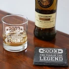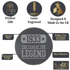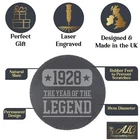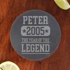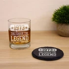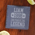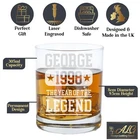 ANY Birthday The Year Of The Legend Engraved Whiskey Glass β Scotch Whisky Glass Tumbler and/or Natural Slate Coaster β Personalised Birthday Glass & Coaster β Gifts for Him ππ D E S C R I P T I O N π - Our Whisky Glass is engraved with a Year Edition Birthday Design with the text 'THE YEAR OF THE LEGEND' that makes the perfect gift to celebrate that special someone's Birthday. - A drinks glass that never goes out of date no matter how old they are meaning that the Glass or Coaster can be used and reused year after year. - Design is laser engraved and permanently etched on the glass therefore dishwasher safe, a gift that they will cherish forever! - The coasters are natural slate and has individually cut edges giving each mat a rustic and unique look. It has soft padded feet ensuring that the slate coaster won't scratch surfaces - The Whiskey Glass has a heavy base and Rolled Rim which helps to protect against chipping. - A small drinks tumbler glass that is ideal and suitable for any beverage - A perfect sized glass for a Bourbon, Scotch Whisky, Vodka or Rum - The perfect gift for grandad, dad, husband, friends, brother, boyfriend or that special man in your life. - Our Whisky Glass and Coaster is an Amazing Birthday Gift, a special Keepsake present for anyone. PLEASE NOTE PICTURES ARE TO CLEARLY SHOW DESIGN - ENGRAVING CUTS INTO THE GLASS AND HOLDS NO COLOUR AND ON SLATE WILL SHOW IN LIGHT GREY ** IF YOU ARE WANTING TO PURCHASE BOTH GLASS AND COASTER YOU WILL NEED TO ENSURE YOU CHOOSE CORRECT DROPDOWN OPTION ** **Available to purchase glass and/or coaster personalised with a custom name (please select from drop down option) at ADDITIONAL COST - If selected 'no' to add personalised name, glass and/or coaster will come with standard Legend design only** ------------------------------------------------------- π P E R S O N A L I S E π - If selected 'yes' to add personalised name and year, please state in the personalisation box which name you would like engraved on the glass. - If no - Please state the year required - Please note all other text and design will remain the same. - If selected 'no' to add personalised name, glass and/or coaster will come with standard Legend design only - Make sure to provide all necessary information (Please ensure the correct spelling is given as these cannot be changed after they are made) - Send us a message if you have any queries or if you require a different year engraved on the glass. --------------------------------------------------------------- π CONTENTS π Available to buy: - Whisky Glass on its own - Slate Coaster on its own (choice of Round or Square) - As a set with the Whisky Glass and matching Slate Coaster (choice of Round or Square) ---------------------------------------------------------------------- β¨ S I Z E S β¨ Whisky Glass has a 305ml Capacity is 9.5cm Tall with an 8cm Diameter Square Coaster is 10cm x 10cm Round Coaster has a 10cm Diameter ----------------------------------------------------------------- π¦S H I P P I N Gπ¦ Our processing time to make & dispatch your order is 1 - 2 business day. Choose your shipping type at checkout: 2nd Class: 2-4 working days 1st Class: 1-2 working days Express: Next day guaranteed (Monday β Friday) International Tracked: 5-12 working days All times are estimated times only. 18th | 20th | 21st | 30th | 40th | 50th | 60th | 70th | 80th | 90th | 100th | Birthday gifts for Him
