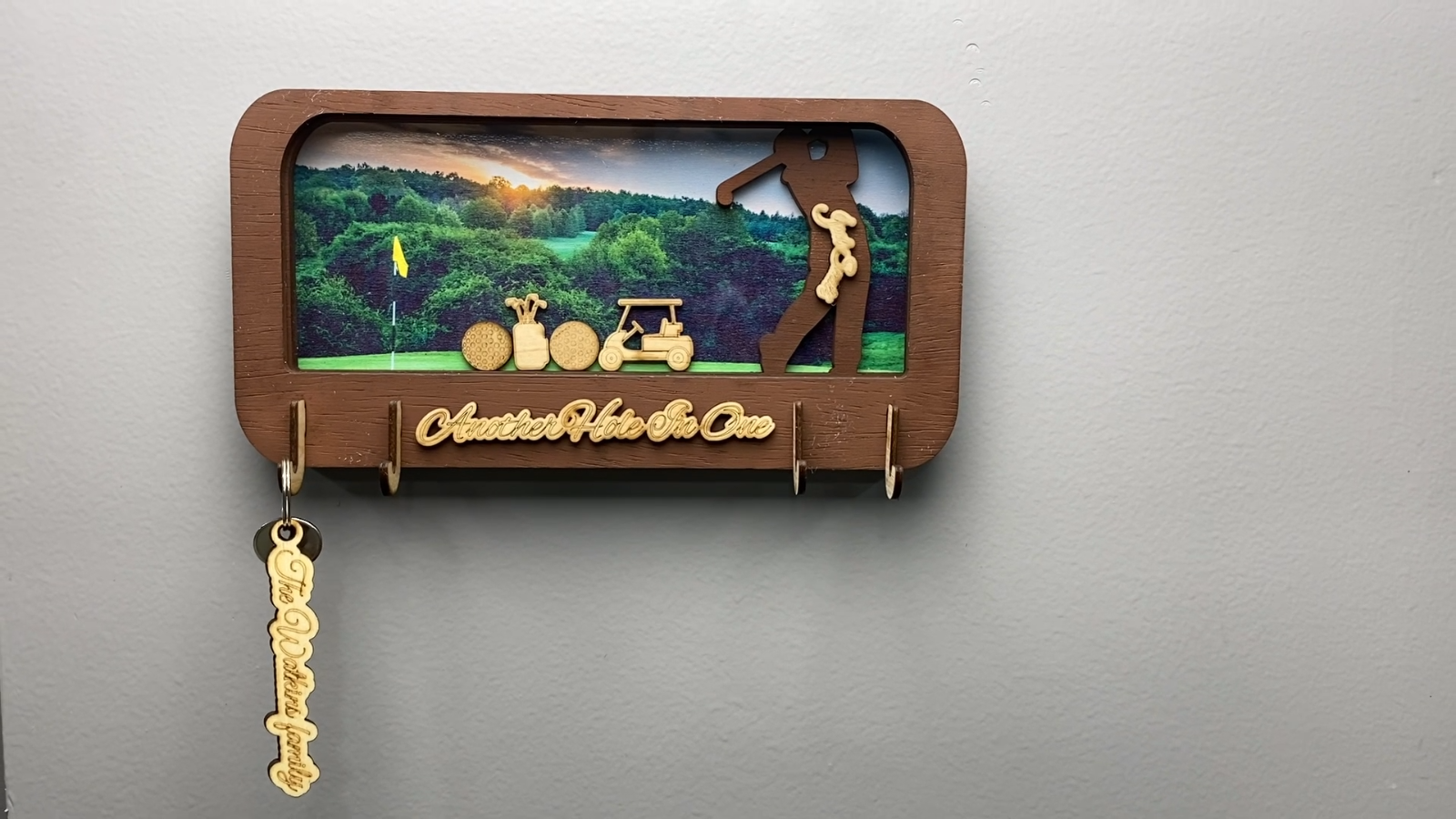 Happy Holidays Too Our Valued Customers, Description: 100% brand new and high quality Color: Multi-Colored Material: 1", MDF Wood Item: Handmade, Key Rack Holder, Christmas Holiday Shadow Box key Holder that Is Made by Sublimating Image on to MDF Wood Board, which is permanent. The wooden engraved pieces are, a golf bag, golf balls and golf cart man. When Can I Expect My Order Pleases ensure your shipping address is accurate. Delivery Timeframe: Our standard processing period is between 1-2 business days, However, during the holiday season and other peak periods, this could take slightly longer. Returns No Returns, not accepted on made as ordered/ custom items. Package includes: 1 Key Rack Holder Thank You!!