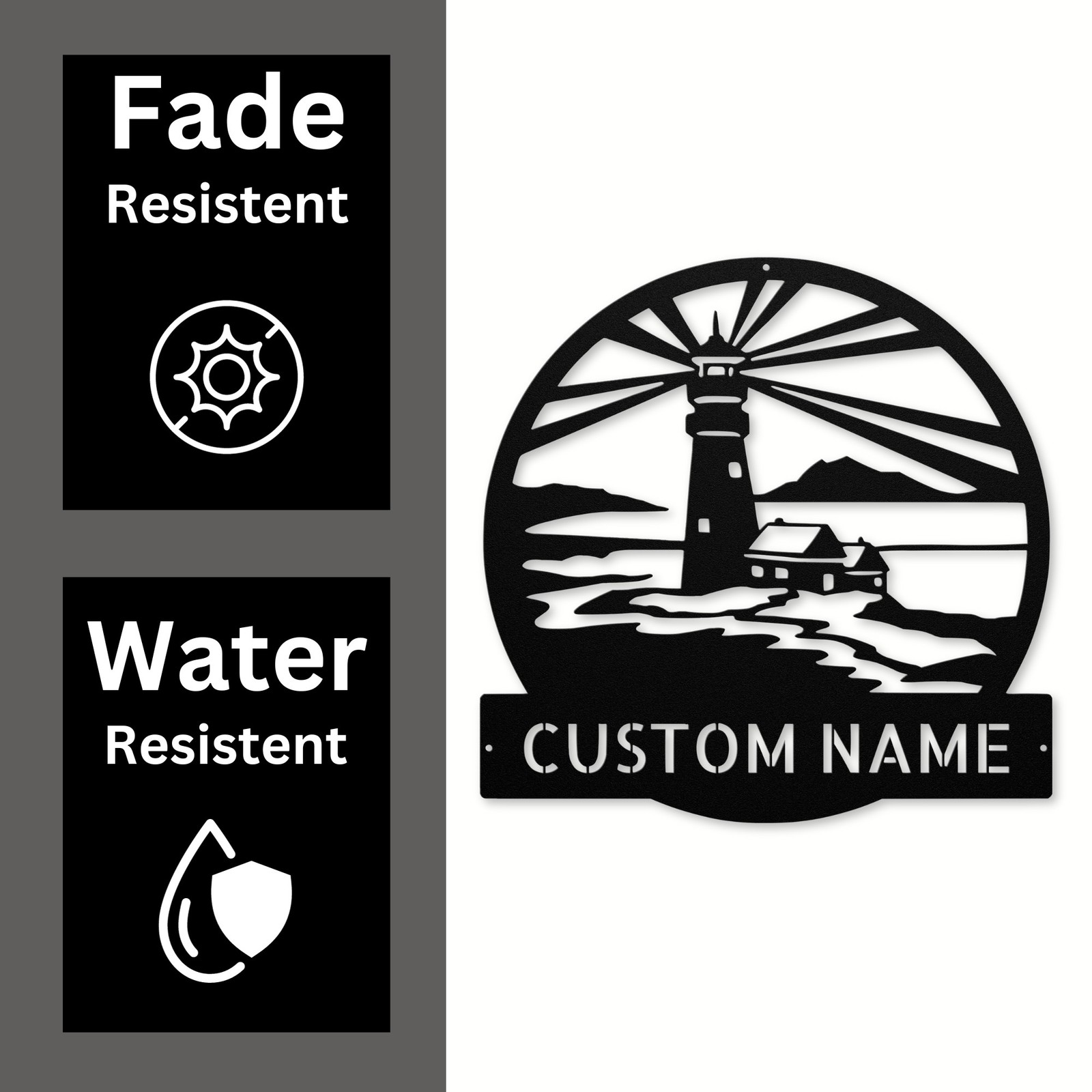 Product Description Enhance your coastal decor with our Personalized Lighthouse Scene Metal Sign . This beautiful sign captures the charm of lighthouse scenery, making it a perfect addition to any home or office. It also serves as a thoughtful gift for birthdays, Christmas, or any special occasion. Crafted from 16 gauge high-quality metal , this sign is designed for durability. The powder coating ensures it is dust, weather, and water resistant , making it suitable for both indoor and outdoor display. Key features include: Personalization: Customize it with your name or a special message for a unique touch. Durability: Made from strong metal that will stand the test of time and the elements. Versatile Decor: Ideal for your home, beach house, or as a unique gift for friends and family. Great Gift Idea: A wonderful choice for any occasion, from holidays to celebrations. Celebrate your love for coastal living with this stunning sign. Order your Personalized Lighthouse Scene Metal Sign today and enjoy a distinctive piece that brightens your space! Service and Color Choice My metal signs are designed to be personalized just for you, making them the perfect addition to any space! The default color is Black , but I also offer a variety of beautiful options including Copper, Gold, White, and Silver . After placing your order, simply contact me with your preferred color choice, and I'll ensure your sign is exactly how you envision it. Letβs create something special together! π How Metal Signs Are Measured Metal signs are measured from the widest point to the opposite widest point of the design. The listed size (8β, 10β, 12β, 18β, 24β, 30β, 36β, etc.) always refers to the longest edge of the artwork, not the height only and not the width only. Because every design has its own shape and proportions, the other dimension (height or width) will adjust automatically . π Example (30-Inch Size) When selecting a 30-inch sign , the longest side of the design will measure 30 inches . If the design is wider than it is tall: Width = 30 inches Height adjusts proportionally (often around 18β22 inches depending on the design) If the design is taller than it is wide: Height = 30 inches Width adjusts proportionally This ensures the sign keeps its correct proportions and the original shape, no matter which size is selected. π¨ Custom Designs & Logos Welcome Have a special idea in mind? I can make it happen! Whether you need a business logo , family emblem , pet silhouette , or a one-of-a-kind design , I can create it from scratch and turn it into a high-quality metal sign. You can send your concept, sketch, or photo, and Iβll handle the custom design, editing, and production from start to finish. Your vision becomes real metal artwork made exactly the way you want it. β¨ Custom Any Design: If you have a special idea in mind, I can turn it into a metal sign, just message me! π¦ Ordering & Gift-Ready Each sign is crafted to order with great care and attention to detail. Your piece arrives ready to hang , making it easy to display or give as a thoughtful gift. Whether it's for your home or for someone special, every sign is made to impress and last for years. π Your support means the world to me and my family. Thank you for helping keep this small art business growing. π Production & Shipping Every sign is made to order with a fast turnaround time. Production Time: 1β2 business days Free Shipping: UPS Ground (estimated 2β5 business days ) Expedited Shipping: FedEx 2-Day Delivery available at checkout Shipping Location: All orders ship from Indiana, USA Each order is packed securely to ensure your metal sign arrives safely and ready to display.