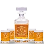 Our Gifts Inscribed premium whiskey decanter sets with whiskey glasses gift includes a vintage whiskey decanter with stopper and whisky glass set of 2 or 4 whisky glasses, personalized with the design & name of your choice. The whiskey drinking glasses set is designed to help enhance the aroma and drinking experience of any liquor. Choose from 9 designs for your whisky decanter and drinking glasses set. Add personalization and we’ll custom engrave your designs on the liquor decanter & double old fashioned glasses gifts for men. Engrave your whiskey decanter vintage and glass cup set for a unique whiskey gift set perfect for events like weddings, birthdays, anniversary, groomsmen, retirement, or as a housewarming present. The bourbon decanter bottle and scotch glasses make a great addition to any kitchen or barware set. ENGRAVED WHISKEY GLASSES GIFT - Create lasting memories and enjoy the ultimate drinking experience with the personalized decanter glass and glass cup set. WHISKEY GLASS SET - Our glasses drinking set is made of high-quality crystal glass that is durable and keeps the liquor insulated at the perfect temperature for longer. The rum glass glassware set holds 11.2 oz capacity of your favorite liquors. GLASS WHISKEY BOTTLE DETAILS - The liquor bottle glass design enhances the aroma of any spirit including rum, bourbon, scotch, tequila, wine, and more. The whiskey tumbler glass decanter holds 750 ml of liquor, has a glass stopper and features a sleek, non-faceted glass that provides the perfect blank slate for etching and customization to your custom whiskey tasting glasses. CUSTOM WHISKEY GLASS - Select your design and personalize your name, initial, & date to create a one-of-a-kind glass whisky bottle set laser engraved gift. The decanter glass and whiskey tumbler set engraving is permanent, dishwasher safe and lead-free. WHISKEY GIFTS FOR MEN – The set of lowball glasses and decanter whisky are the perfect long-lasting keepsake for events such as weddings, birthdays, anniversary, groomsmen gifts, fathers day, mothers day, or retirement present. Nice addition to any bar glasses set. Enhances the taste and drinking experience of whisky, bourbon, scotch Great for having drinks neat or on the rocks Perfect gift for him, wedding, anniversary, birthday, and more HIGH QUALITY GLASS High quality crystal glass Personalized laser engraving included Whiskey glasses holds 11.2 oz of liquor Whiskey decanter holds 26 oz or 750 ml of any liquor Heavy base, lowball glass shape Dishwasher safe