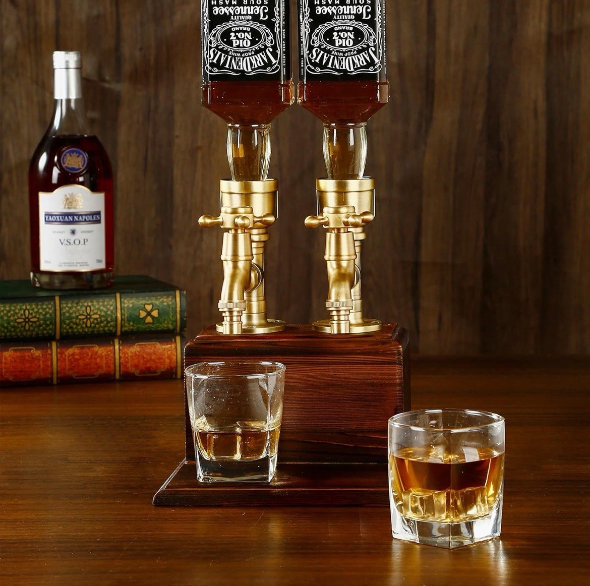 This Personalized Whiskey Dispenser is a rustic, handcrafted piece made from solid pine wood. It features a tap for all spirits and a 1 qt capacity, making it perfect for serving your favorite liquors. The dispenser comes with an assembled wooden stand and has a truly personalized touch, allowing you to specify your desired design, tap style, and text. This unique and stylish piece adds a touch of charm to any home bar or man cave.
