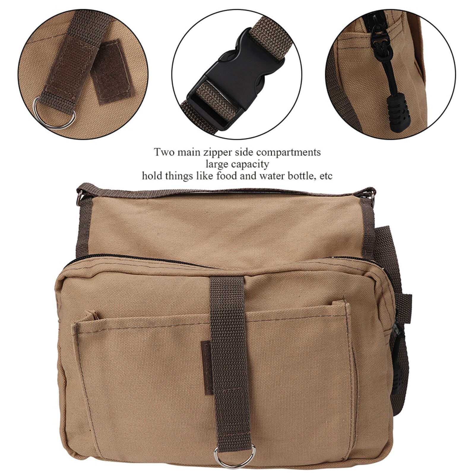 Feature: 1. Made of good quality canvas material, breathable, durable and wear-resistant. 2. Two main zipper side compartments, large capacity, can be used to hold things like food and water bottle, etc. 3. Two handles designed on the top, you can help carry the bag when your pet feel tired. 4. With straps and fasten buckles at the bottom, the bag can be firmly put on the back of your pet, not easy to fall off. 5. Multi-functional dog backpack, ideal for dog hiking, camping, long trail walks, backpacking trips, traveling or everyday use. Specification: Features: 1. Made of good quality canvas material, breathable, durable and wear-resistant. 2. Two main zipper side compartments, large capacity, can be used to hold things like food and water bottle, etc. 3. Two handles designed on the top, you can help carry the bag when your pet feel tired. 4. With straps and fasten buckles at the bottom, the bag can be firmly put on the back of your pet, not easy to fall off. 5. Multi-functional dog backpack, ideal for dog hiking, camping, long trail walks, backpacking trips, traveling or everyday use. Specifications: Material: Canvas Color: Khaki Size: Approx. 53*29*2 cm/ 20.87*11.42*0.79 inch Packing List: 1 * Dog Backpack Note: Please note that the new type and old type of this product will be sent randomly, and make sure you will not mind before ordering.