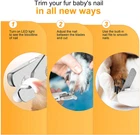 【Ultra Bright LED Light】 LED Light accurately identifies the sight range and avoids over-cutting the flesh in pet toenails for an easier and safer cutting experience! Note: LED light may have fewer illumination effects on dark and black nails. 【Strong Cutting Blade】This toenail Clipper blade made of stainless steel, the good precision blade provides smooth cutting actions. re-designed widened blade for all sizes of dogs and cats! 【Comfortable Grips】 the Handle is ergonomically designed non-slip handles that are durable, lightweight, and comfortable. Dog nail trimmer with led light come with a USB charge cable. 【Designed for Convenient】The little catcher box collected the trimmed nails during the cutting experience. Built-in collapsible trimmer located on the handle to polish sharp nails until perfection. make you have a complete and pleasant trimming experience for your living. 【Exquisite gift box packaging】 Lovely and exquisite gift box packaging, pleasing to the eye. It is also a great gift for friends who have pets!