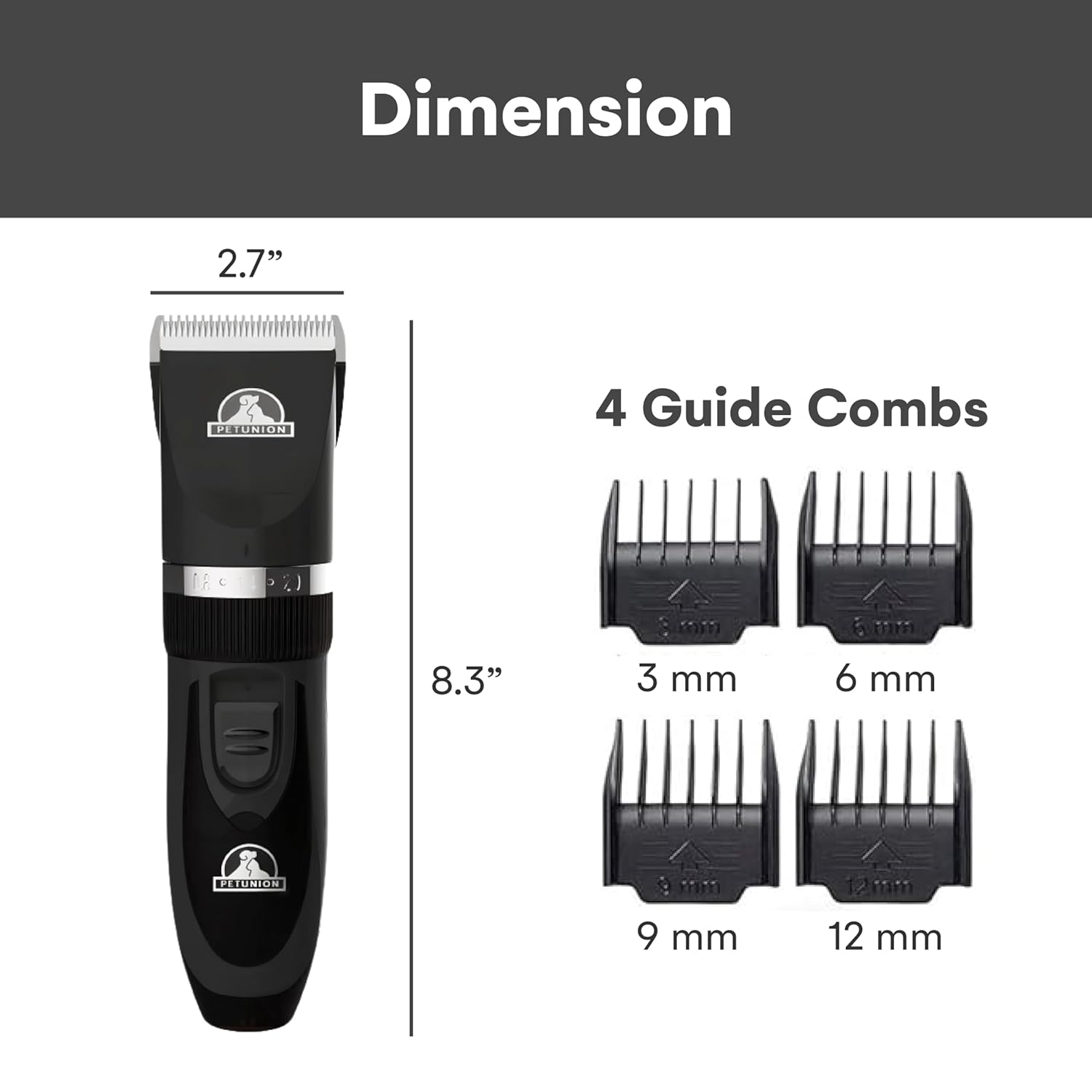 Store New Arrivals Add to Favorite View Feedback Contact Pet Union Professional Dog Grooming Kit - Cordless Low Noise Dog Clippers for Grooming Thick Coats - All Pet Safe Cat Hair Trimmer - Pet Grooming Kit Includes Dog Hair Clippers, Nail Trimmer & Shears Description Unit Count 1 Count Power Source Battery Powered Color Black Brand Pet Union Batteries 1 Lithium Ion batteries required. Battery Description Rechargeable Battery Manufacturer Pet Union Is Discontinued By Manufacturer No Package Dimensions 8.39 x 6.06 x 2.72 inches; 1.48 Pounds Included Components 4 Guards, Charger, Clippers, Nail FIle, Nail Trimmer Everything You Need in One Kit - If you're looking for the complete pet grooming kit for your dog, cat or other furry friend, look no further! Premium dog grooming clippers to help you professionally groom your pets coat and nails - Including clippers, multiple guards, nail trimmers, scissors, and more Low Vibration & Low Noise Clippers - Have an anxious pet? Have no fear! Pet Union's low-vibration, precision motor ensures whisper-quiet operation and a stress-free grooming experience for your little buddy. Rechargeable & Cordless - Thanks to an ergonomic design & rechargeable battery, grooming with the Pet Union grooming kit for small and large dogs is a breeze for even the hardest-to-reach areas. Adjustable, Safe, & Sharp Blades - Pet Union's grooming combs are contoured for the most skin-friendly grooming experience, and thanks to the Precision-cut titanium blades, there's no uncomfortable pulling at your pet's hair. Just a safe, easy and comfortable grooming experience! Be sure to thin a thick coat with scissors to avoid any jamming. One of the best track records and ratings history of any dog clippers for grooming on the market! Product description ABOUT US We offer the best prices around on high quality products. Our E-store includes media such as books, movies, music and games while offering electronics, toys, sporting apparel, clothing, tools, general home, garden items and more. SHIPPING We are always working hard to ensure your package arrives as soon as possible. Please understand that some factors like weather, high postal traffic, and the performance of shipping companies are outside of our control. We offer free shipping to the lower 48 states and ship within 2 business days of payment, usually sooner. We do not accept P.O. Boxes. Please provide a physical address. RETURNS We offer a 30-Day Return Policy on items which you are not completely satisfied with. You have the option for a full-refund or an exchange of the item. No returns are available on items shipped outside of the USA. PAYMENT We accept PayPal. CONTACT US This page content is yet to come Please ad us to your favorite seller and visit again later Thank You CUSTOMER SATISFACTION We try our very best to make sure every customer is completely satisfied. If there's a problem, message us! We're happy to help.