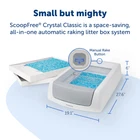 Strike scooping the litter box off your to-do list. With the ScoopFree® Crystal Classic Self-Cleaning Litter Box, there’s no scooping, cleaning or refilling your cat’s litter box for weeks. This litter box uses crystal litter which provides 5 times better odor control than traditional clumping litter. Crystal litter absorbs urine and dehydrates solid waste. This low-tracking litter also helps keep your floors clean because it is 99% dust free and doesn’t stick to your cat’s paws. Safety sensors make sure that the scooping cycle only occurs when your cat is out of the box. The disposable trays have a plastic lining to help protect against leaking, and each tray comes with a lid for quick and easy disposal—simply remove the tray and throw it away. PetSafe® brand is here to help you and your pet live happy together™. On Oct 25, 2024 at 05:12:12 PDT, seller added the following information: