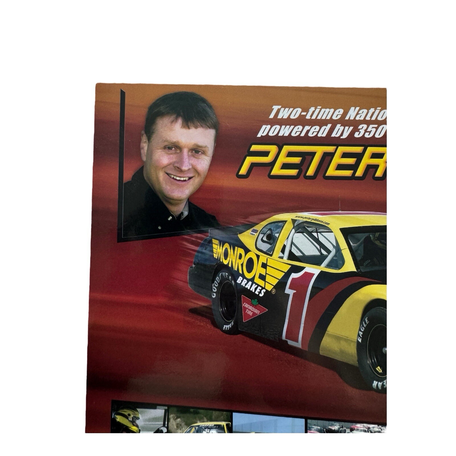 This autographed A4 size poster features Peter Gibbons, a celebrated driver in the CASCAR Racing Series and two-time National CASCAR Champion. Highlighting his 2007 season with Monroe Brakes and Canadian Tire sponsorship, this unique piece includes detailed specifications of his race car and his significant racing achievements. Perfect for racing enthusiasts and collectors. Key Features: • Driver: Peter Gibbons • Team: Monroe Brakes/Canadian Tire • Car: Chevrolet Monte Carlo • Career Highlight: Two-time National CASCAR Champion • Top Accomplishment: Multiple CASCAR victories and championship titles • Poster Type: Autographed collectible • Condition: Excellent, with clear signature Style and History: Peter Gibbons is a well-known figure in the CASCAR racing world, making this autographed poster a valuable addition to any collection. His success with Monroe Brakes and Canadian Tire is well documented, and this poster captures a significant moment from his illustrious career.