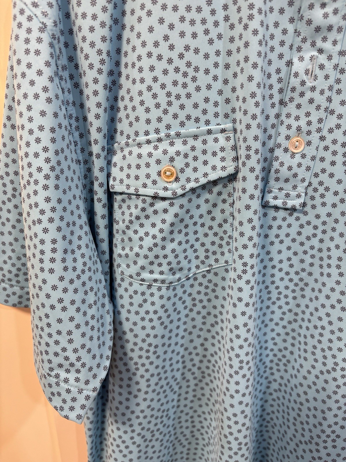 The Peter Millar Crown Crafted Polo Shirt in XL size is a stylish and comfortable addition to any man's wardrobe. Made from a blend of polyester and spandex, this lightweight shirt features a floral pattern, short sleeves, and a collared neckline with a button closure. Ideal for casual occasions, this blue polo shirt from the Peter Millar Crown Crafted collection offers a touch of sophistication with its spread collar and knit fabric. Perfect for men who appreciate both quality craftsmanship and modern design.