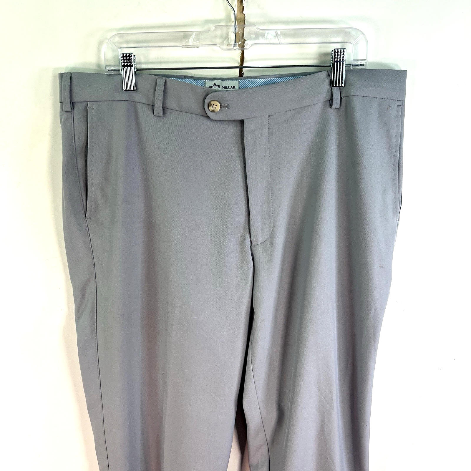 The Peter Millar Crown Crafted Surge Performance Trouser in GALE is a stylish and versatile dress pant designed for various occasions including travel, casual outings, parties, and business meetings. Made from performance fabric with a mid-rise and slim fit, these trousers feature a tailored leg style and slash pockets for added convenience. The breathable material and stretch feature ensure comfort, while the logo accents and button closure add a touch of sophistication. Perfect for the summer, fall, and spring seasons, these pants are machine washable for easy care and maintenance. See description condition for actual measurements: Item well cared for, gently used. Waist:19 in (38 ") / Inseam:32 in Rise:10 in / Cuff:8 in :Measured flat in inches 100% GENUINE U S A SELLER Check out MY FEEDBACK! PROFESSIONAL SHIPPING! PLEASE NOTE: Please look at the measurements before purchasing. If you're not sure about the size, flat lay a similar item of your own and measure that item to compare with our measurements. This definitely helps in deciding if the item is the right size. Return Policy If your item does not fit, we do accept returns within 30 days. Please note, the item must be returned in the exact same condition as it was received. We request that you select "Item does not fit" when returning an item that does not fit. Thank you! Please see pictures for an accurate description of the item and condition
