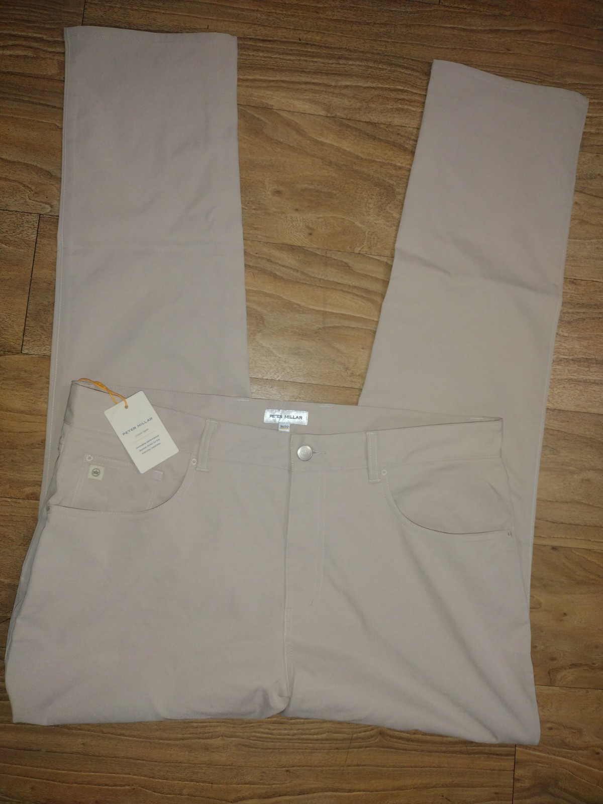 Upgrade your golf apparel with these Peter Millar Crown Sport pants. Designed with performance in mind, these khaki beige pants feature a flat front and straight leg style. The lightweight and breathable microfiber polyester material provides quick dry and moisture-wicking features, making it perfect for any occasion like travel, party/cocktail, casual or workwear. These pants also come with handy accents like the Crown logo and slash pockets for your convenience. Inseam of 32 inches, these pants are perfect for men of size 40. The pants are brand new with tags and retail at $160. Get your hands on these pants and elevate your game New with tags Size 40x32 (PeterMillar)