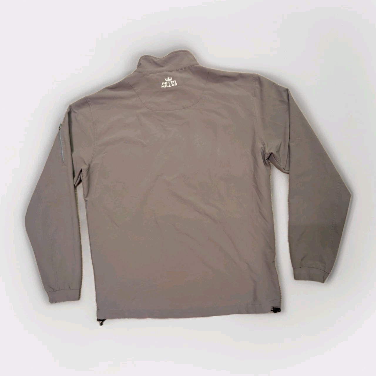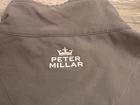 Peter Millar Element Wind Jacket Mens M Brown Full Zip Stretch Golf Outdoor - Brand: Peter Millar - Line: Element 4 Wind - Men's size Medium - Lightweight performance wind jacket - Full zip front closure - Stretch fabric (95% polyester / 5% spandex) for mobility - Zipper chest pocket and two zip hand pockets - Adjustable drawcord hem - Ventilated mesh interior panels for breathability - Subtle embroidered Peter Millar logo on back collar - Neutral brown / taupe color with contrasting zipper pulls - Ideal for golf, travel, hiking, or everyday outdoor wear - Pre-owned condition with normal light wear; no major flaws visible ***All measurements are taken flat and are approximate.*** Please carefully examine photos for condition and details, and feel free to ask any questions before purchasing.