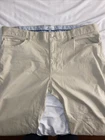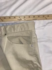 These Peter Millar men's pants in size 40 feature a classic beige color and are made from comfortable cotton fabric in a chino style. They are designed with a flat front and a straight leg, making them suitable for business casual or casual occasions. With features like zip and button closures, slash pockets, and a 32-inch inseam, these versatile pants offer both style and functionality for activities like golfing, travel, or everyday wear. Perfect for the preppy and classic theme, they are a timeless addition to any man's wardrobe. Chino - Jean pocket stlye