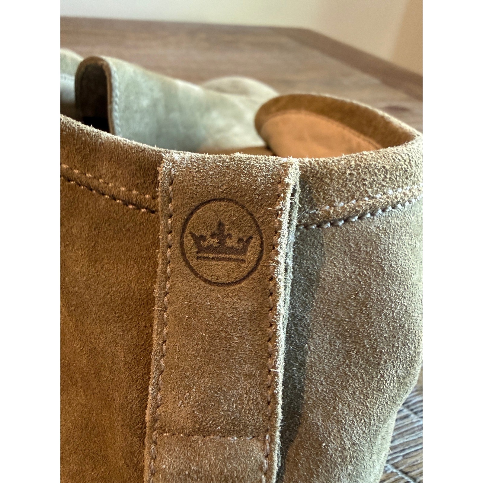 Peter Millar Collection men's slip-on chukka loafers in olive green suede. These stylish shoes feature a low-profile silhouette with a comfortable elastic gore for easy wear. Measurements: • Sole Length: 12.5 in • Sole Width (Widest Point): 4.25 in • Boot Height (Heel to Top): 5 in Style: Slip-On Upper Material: Suede UK Shoe Size: 11.5 AU Shoe Size: 11 Features: Comfort, Cushioned, Breathable Lining Material: Leather Insole Material: Leather Outsole Material: Rubber Closure: Slip On Shoe Width: Standard Fabric Type: Suede Keywords: Peter Millar, Chukka boots, Suede, Slip on, Olive green, Menswear, Casual shoes, Fashion boots, Leather lining, Made in Brazil, Comfortable, Versatile Condition: Good to very good condition. Showing some very light wear. Overall in great condition. Measurements: Please compare measurements to something you already own and love. Shipping: We ship all items within two business days.