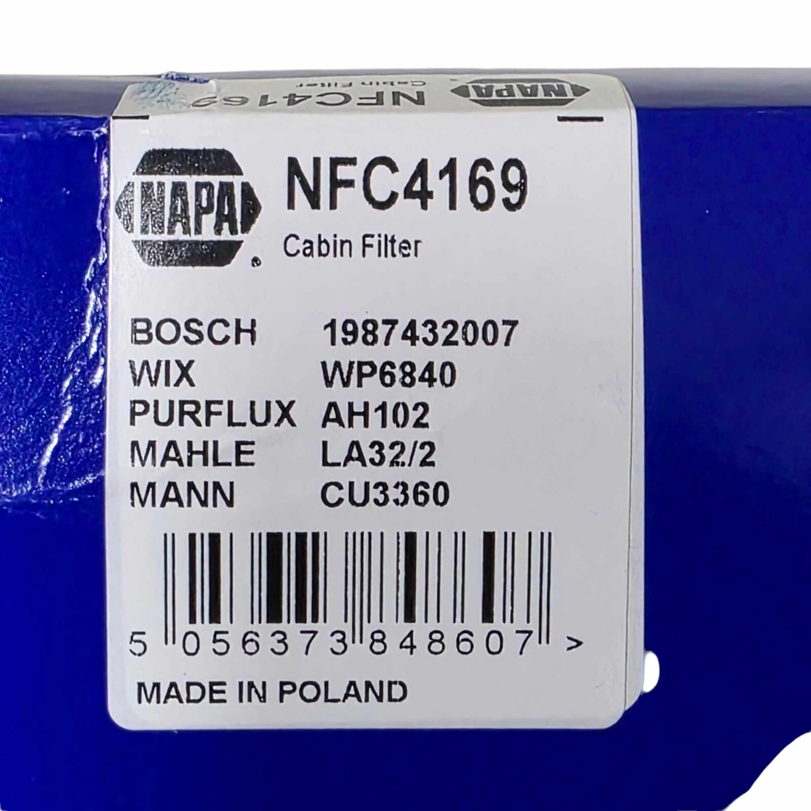 NAPA NFC4169 Cabin Air Filter Peugeot 406 -1987432007 WP6840 AH102 LA32/2 CU3360 BRAND: NAPA EAN: 5056373848607 MANUFACTURER PART NUMBER: NFC4169 TECHNICAL DETAILS Manufacturer: NAPA Length [mm]: 324 Width [mm]: 163 Height [mm]: 31 Filter type: Particulate Filter OEM Numbers: 6447-S5--PEUGEOT,9616429380--PEUGEOT,99657221901--PORSCHE,99657221902--PORSCHE