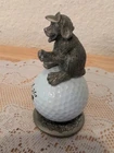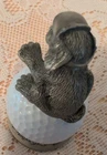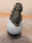 Pewter Dog On Golf Ball Wearing Fort Golf Hat "Dog Leg Left" On Pewter Stand 3", very cute, good condition.