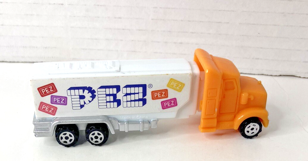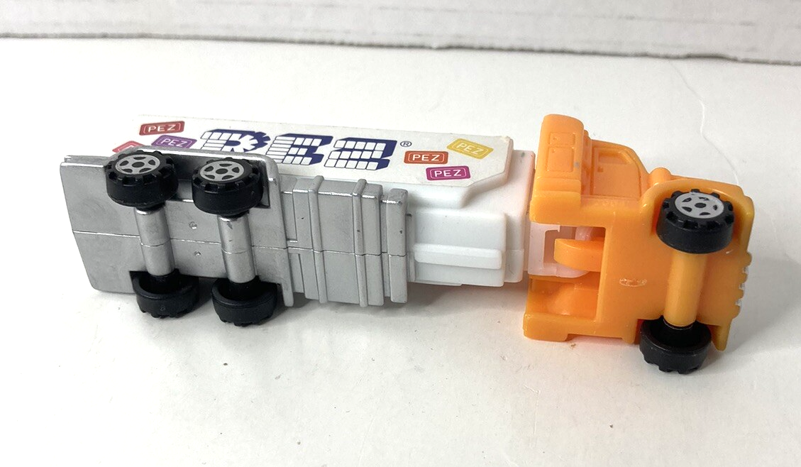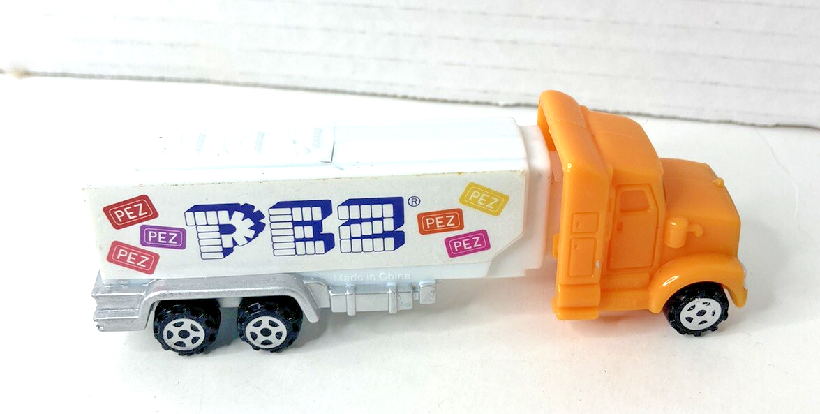 This vintage Pez dispenser truck is a must-have for any collector. The cab is a vibrant orange color and the trailer is white, making it a standout piece in any collection. The truck was produced in 2004 and is in excellent working order. It comes with a Pezamania Truck Orange Cab /white 2115230 that is perfect for display or use. This item is a great addition to any Pez, keychain, or promo glass collection.