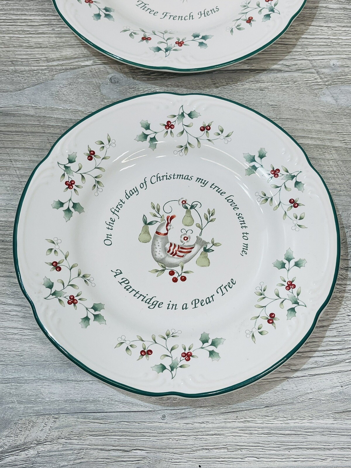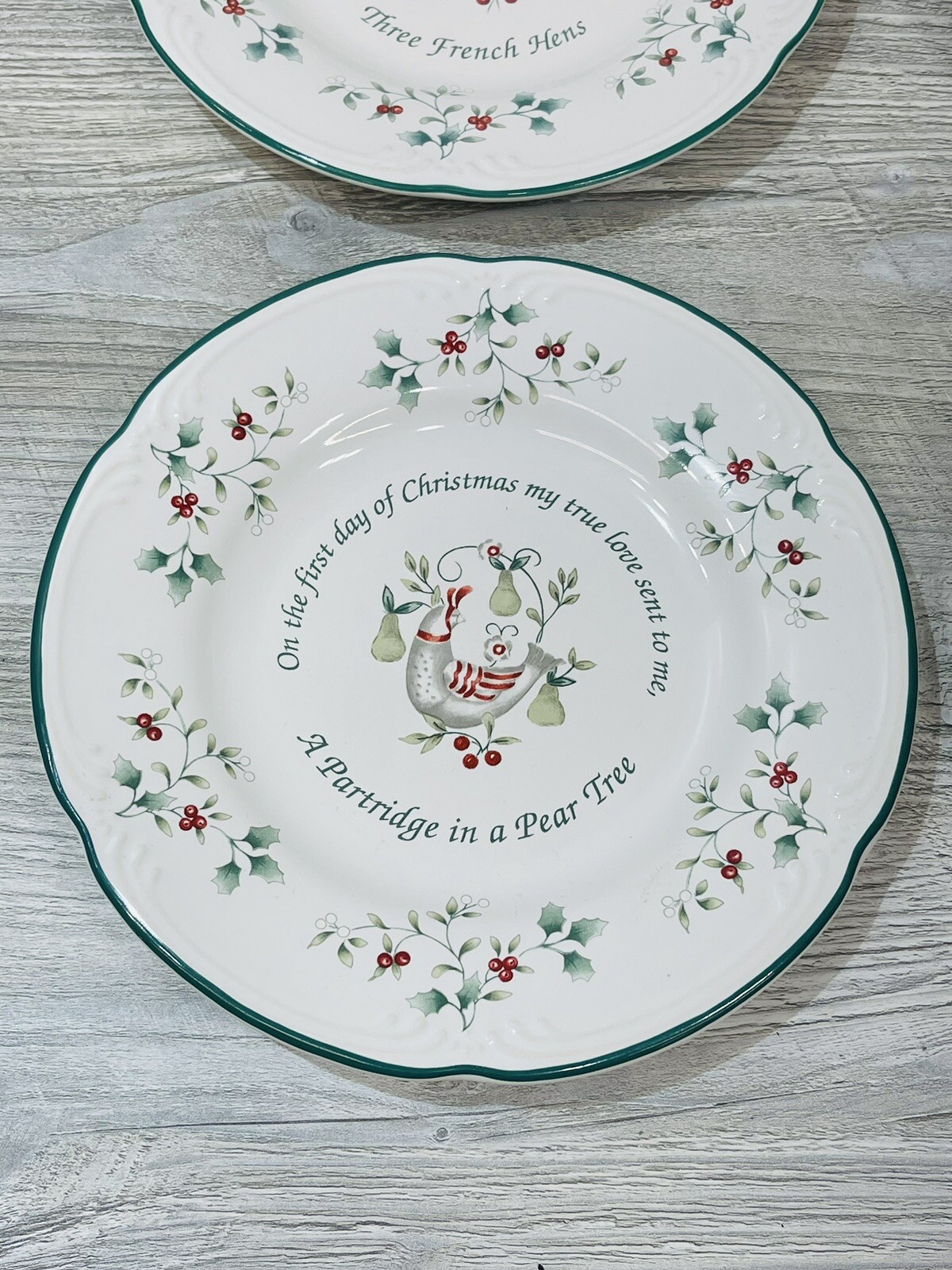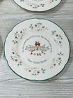 The plates are in good condition. They all measure 8 inches in diameter. the box is solid but a bit rough with a tear in its corner.