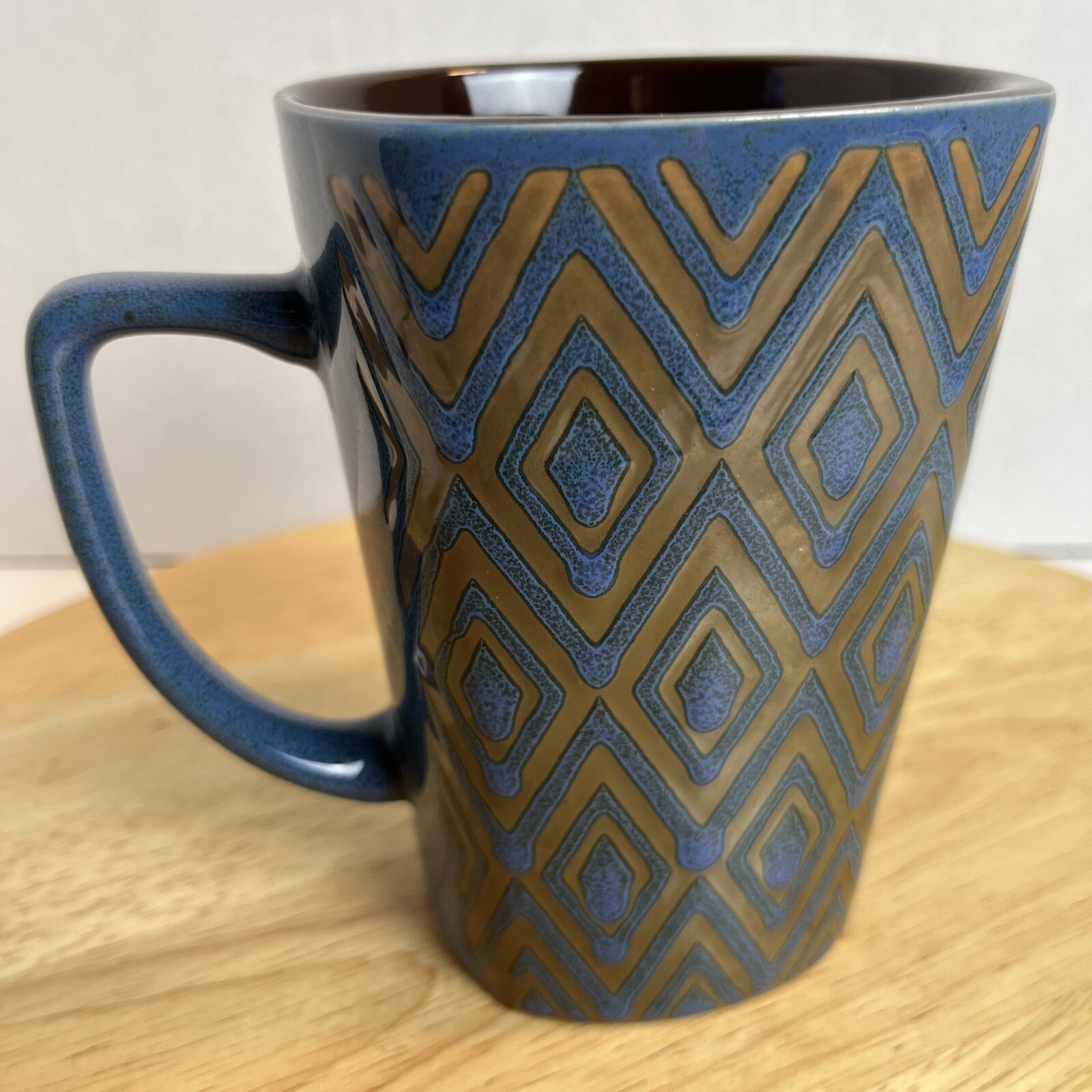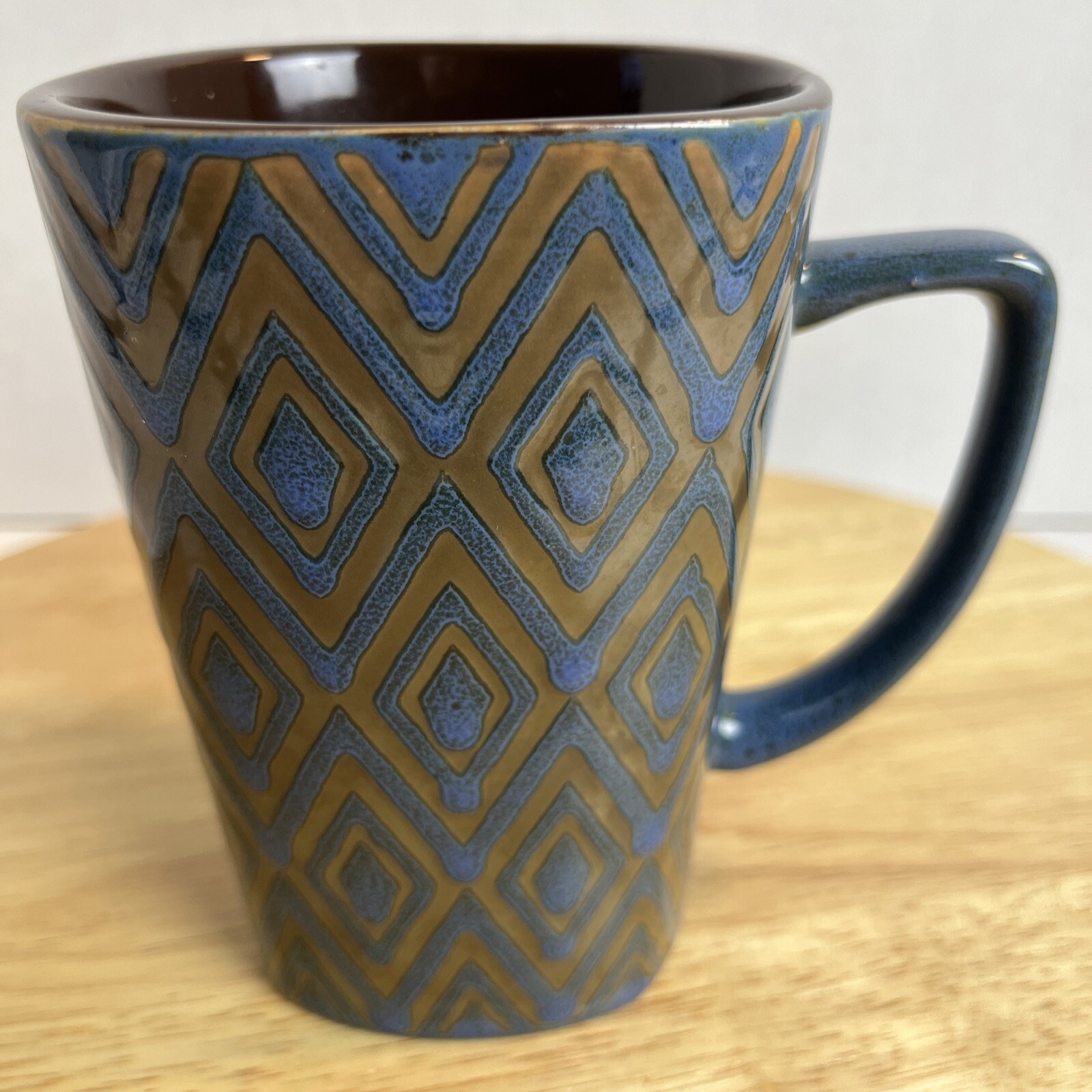 Pfaltzgraff 5” Coffee Mug Heavy Duty Thick Cup Blue Diamond Shape Design.