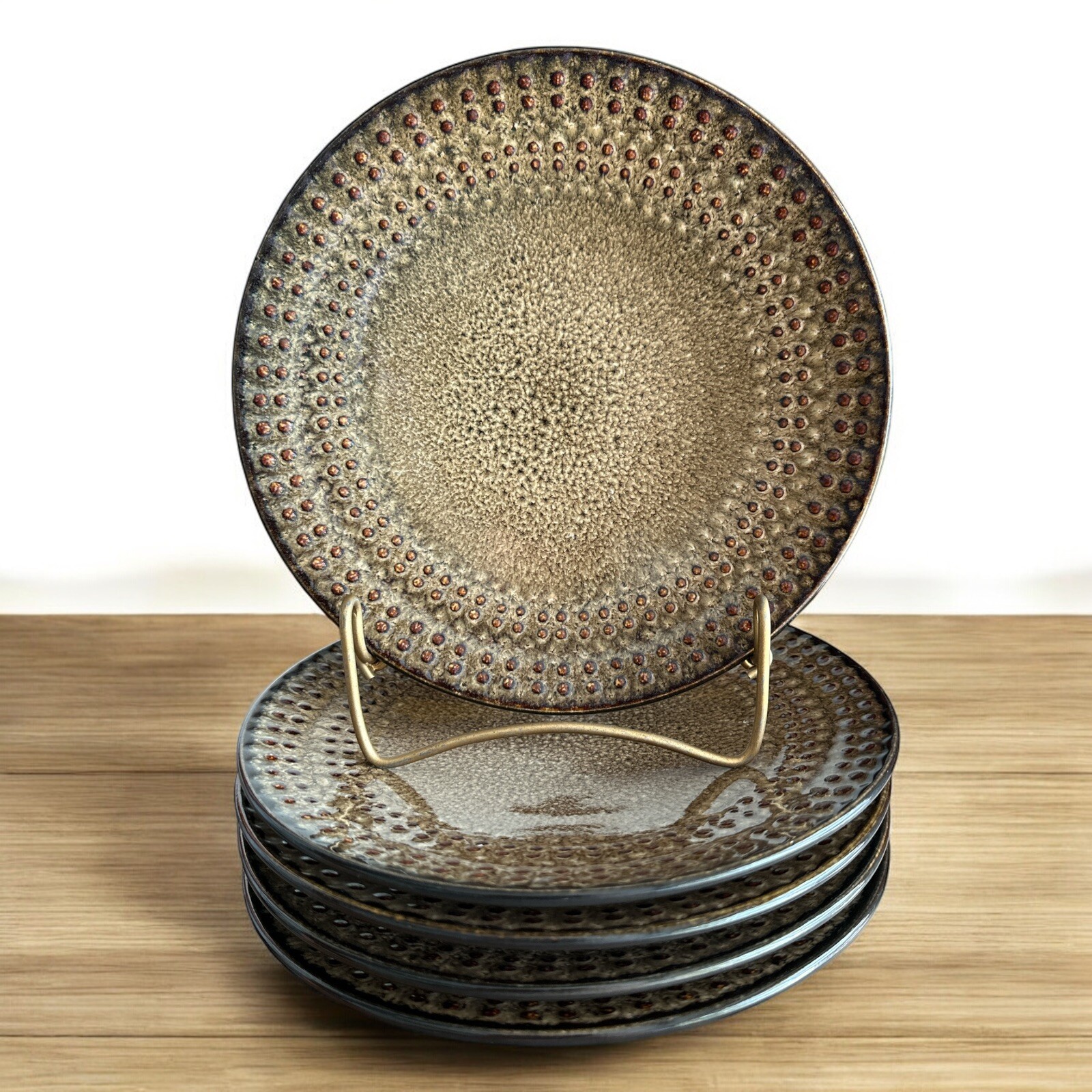 SET OF 6 PFALTZGRAFF CAMBRIA SALAD PLATES 8 1/2” BROWN. Cambria by Pfaltzgraff Salad Plate Description: Speckled Brown, Black, Embossed, Coupe Pattern: Cambria by Pfaltzgraff Status: Active. Actual: 2013 - Product Information Width: 8 3/4 in Stoneware