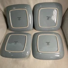 Add a touch of contemporary elegance to your salad course with this four-piece set of Pfaltzgraff Dazee Sky square stoneware salad plates. The plates have a blue background with white daisies, giving them a fresh and clean look. They are made of stoneware, making them durable and perfect for everyday use. These plates are also microwave and dishwasher safe, making them convenient to use and easy to clean. Each plate measures 8 inches in diameter and weighs 5.1 lbs. They are an original product from the Pfaltzgraff brand and were manufactured in 2004. These plates are perfect for all occasions, whether it's a formal dinner or a casual lunch. They are a vintage item, but still have the contemporary style that is perfect for modern-day use. Excellent condition. No chips or cracks.