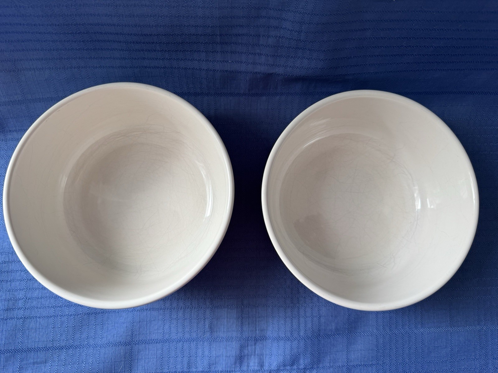 This auction is for 2 Chowder Bowls in the French Quarter pattern by Pfaltzgraff China. Each bowl measures 6 3/8" wide and 3" tall and is in good used condition with no chips or cracks but there are some utensil marks in the bottom of the bowls due to normal use. Please see the pictures for additional details. I have many pieces listed in this pattern. Please visit my other auctions for more information. I will gladly combine shipping for US customers on multiple purchases. Please provide zip code for quote.
