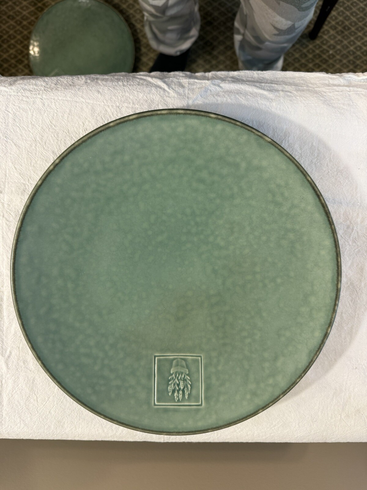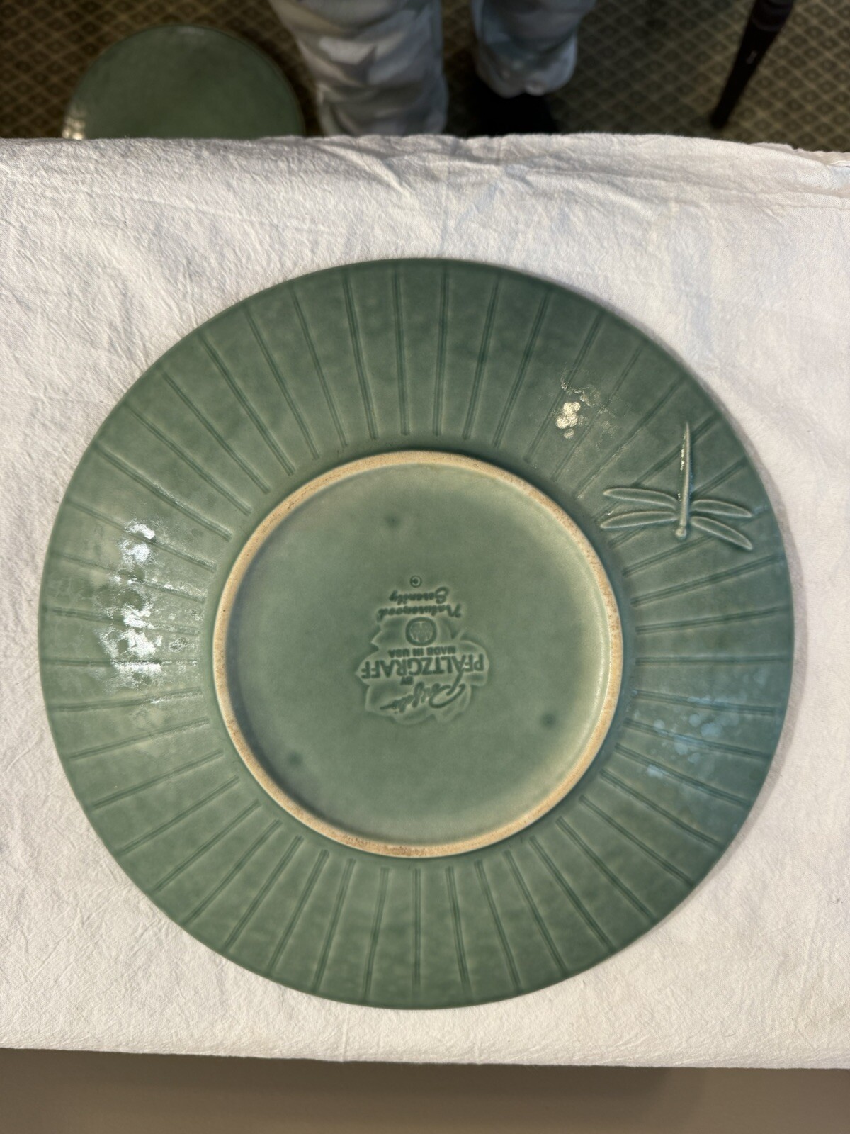 Pfaltzgraff Naturewood Serenity Green 11 1/8" Dinner Plate Dragon Fly USA. I listed these as used but I have never used them they are sitting in my cabinet waiting for a new home. These are in great condition no chips or cracks. I have other pieces listed if interested. Thanks for looking.