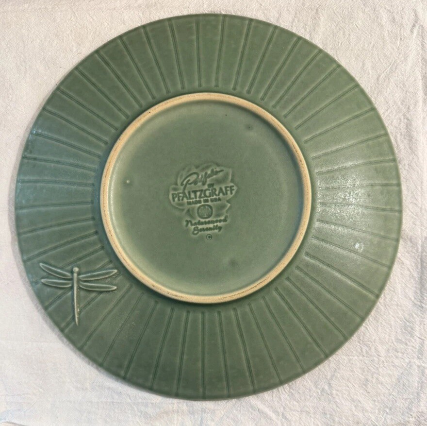 Pfaltzgraff Naturewood Serenity Green 11 1/8" Dinner Plate Dragon Fly USA. Condition is Used. Shipped with USPS Ground Advantage.