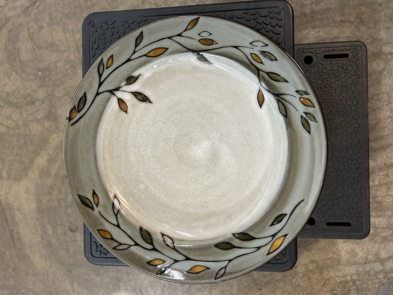 Elevate your dining experience with this set of two Pfaltzgraff 11" dinner plates, featuring a charming Pastoral Leaves pattern in an elegant gray-black hue. The ceramic plates are perfect for any occasion, whether it's a cozy family dinner or a glamorous dinner party. The plates are also dishwasher-safe for easy cleanup. The plates are made by Pfaltzgraff, a well-known brand in the kitchenware industry, and are part of their Decorative Cookware, Dinnerware & Serveware collection. With this set of two plates, you can enjoy a cohesive and stylish dining experience.