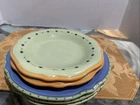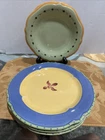 Enhance your dining experience with this exquisite set of Pfaltzgraff PISTOULET dinner plates. The set includes three 11.7/8” dinner plates and two 9” salad plates, all crafted from high-quality ceramic, bone china, porcelain, and stoneware. The plates feature a stunning multicolor PISTOULET pattern that is perfect for all occasions. These round dinner plates are dishwasher safe and have a glossy finish. The backstamp is printed, and the set is in great condition. Whether you're hosting a dinner party or having a family meal, these Pfaltzgraff dinner plates will elevate your dining experience. Look at the pictures before making your purchase