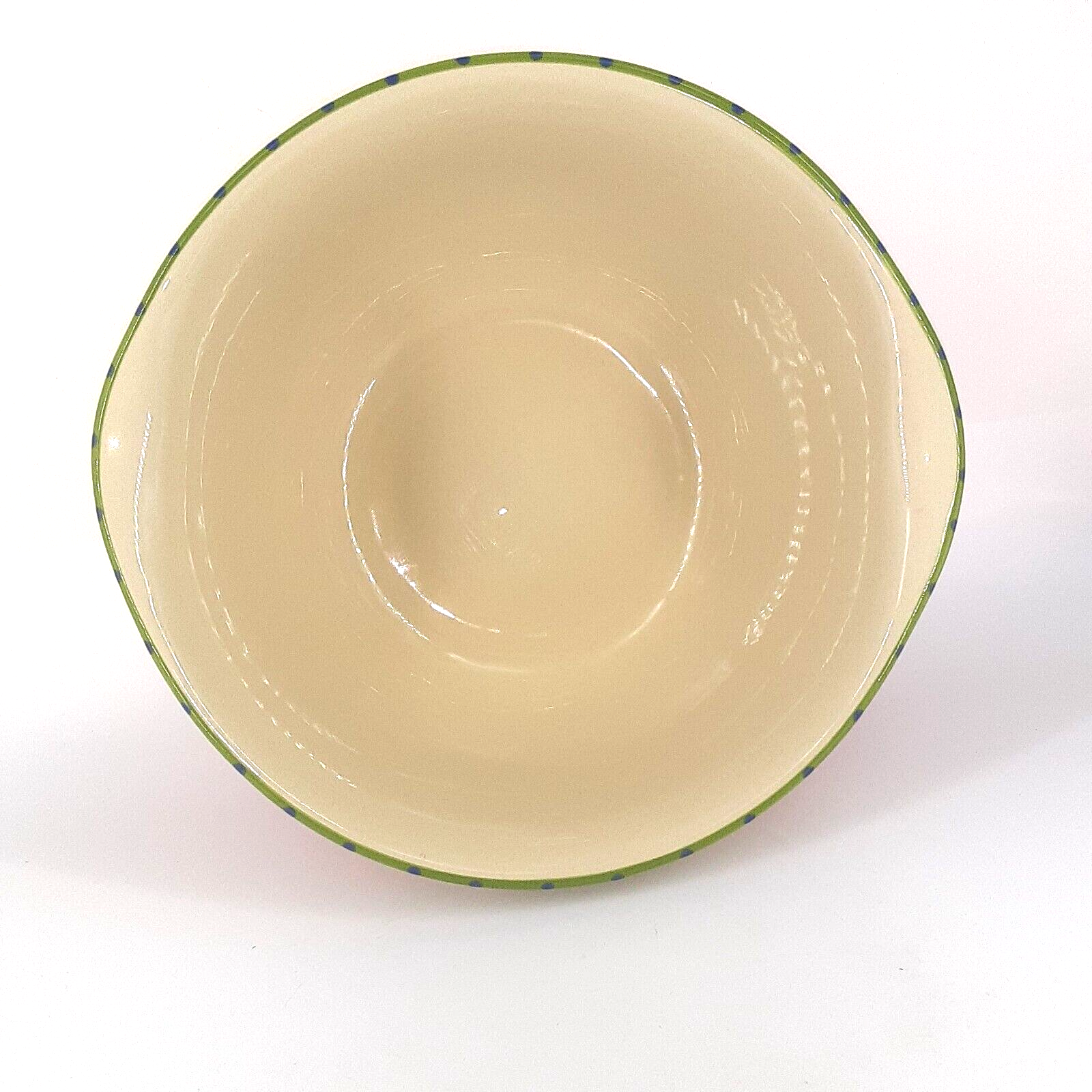 This beautiful Pistoulet bowl is perfect for serving salads or mixing ingredients—the double spouts make pouring a breeze! The charming French country design adds a cozy touch to any table, and it's still in great condition. Sturdy, practical, and full of rustic charm—love it!