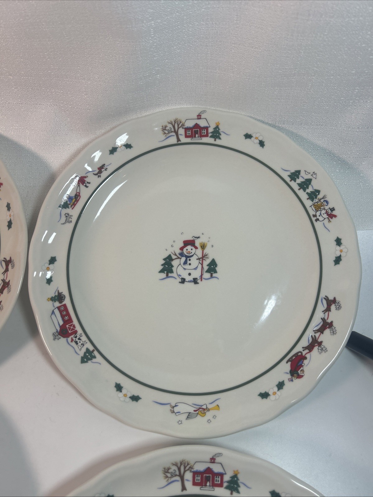 Pfaltzgraff Snow Village Dinner Plates Set of 4, Holidays Winter Christmas Theme, 11" in Diameter. Pre-owned, please see photos for condition.