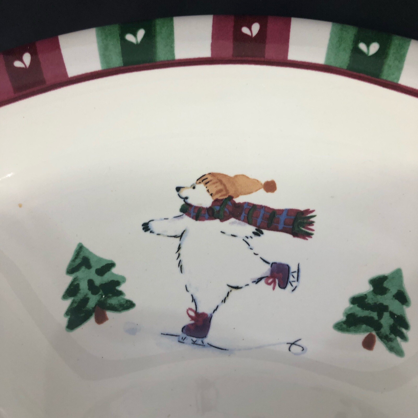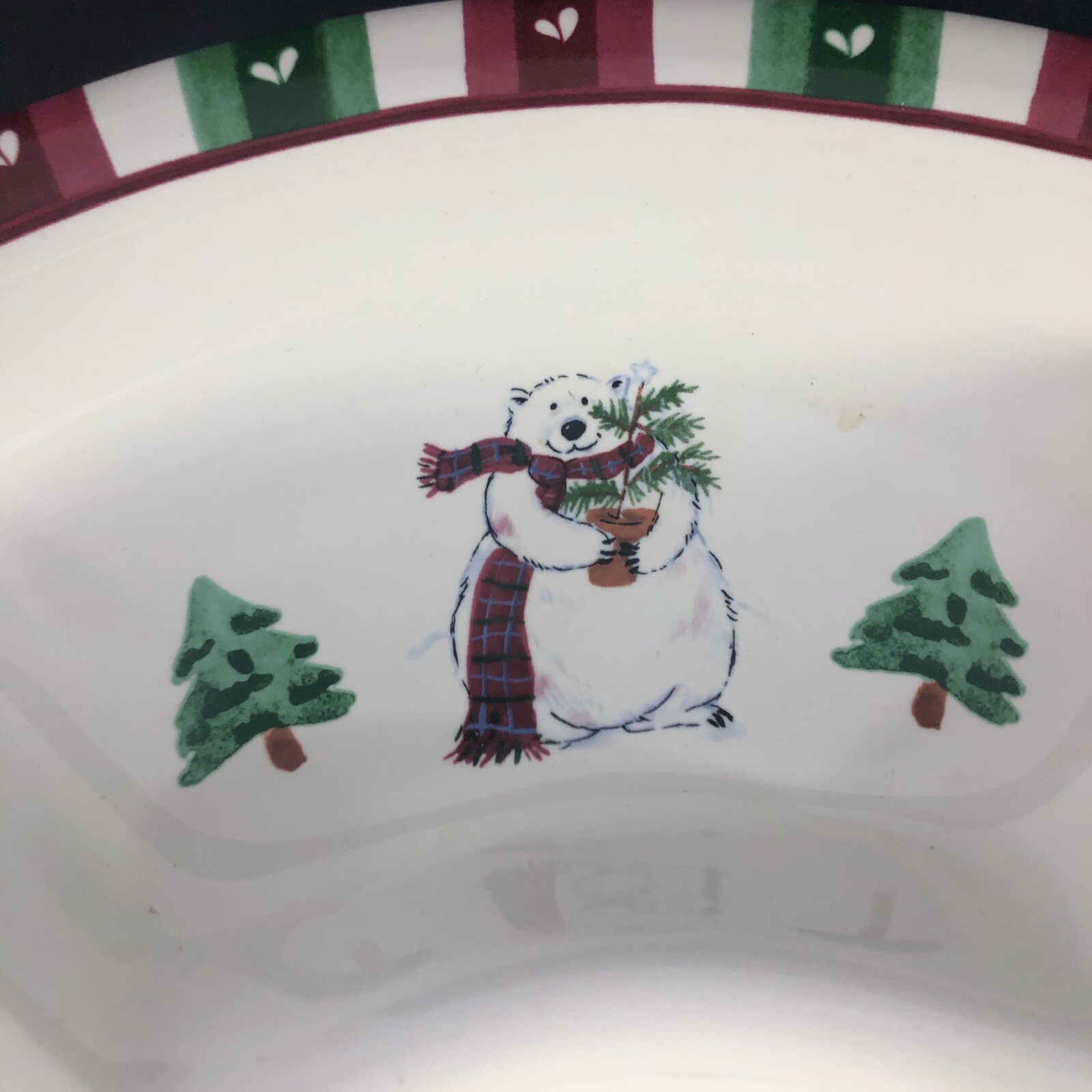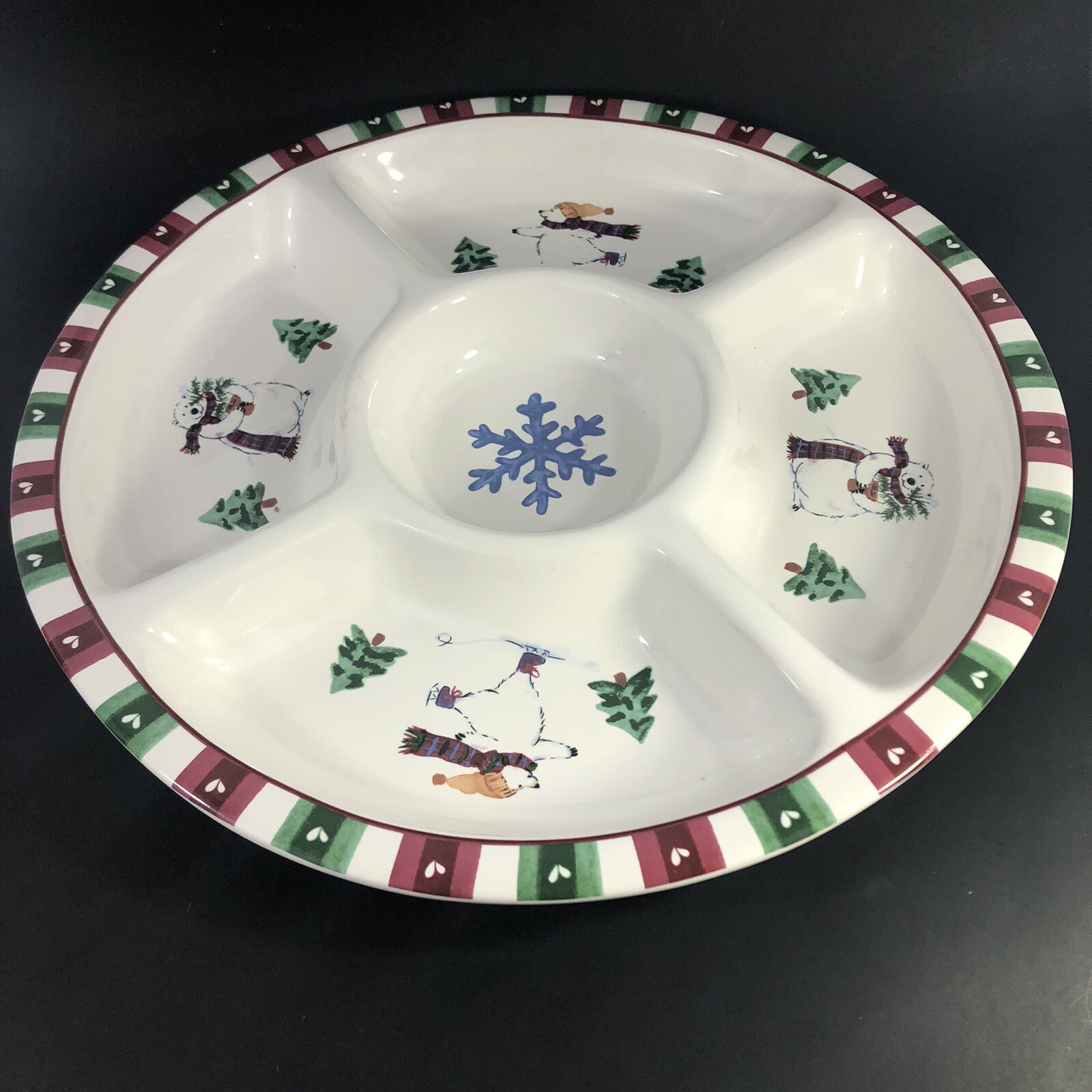 Pfaltzgraff the snowbear collection 5 section divided round Christmas platter. No chips or cracks. Comes in original packaging, although a little worn.
