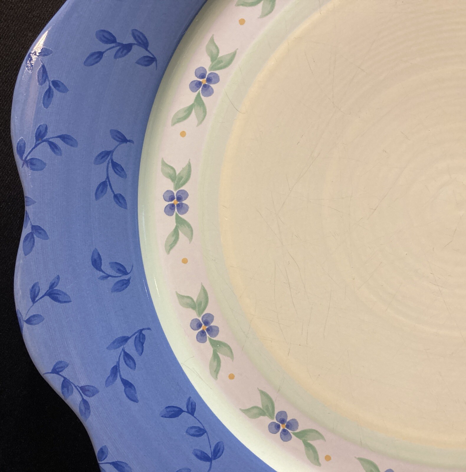 This Pfaltzgraff Summer Breeze platter is perfect for serving cakes, cookies, or charcuterie! The stoneware is sturdy with a beautiful glossy finish, and while it has minor surface scratches, it’s in great condition—no chips or cracks. Love the elegant design, and it’s super easy to clean. Great for entertaining or everyday use. Seller is responsive and offers combined shipping—definitely worth checking out their other listings!