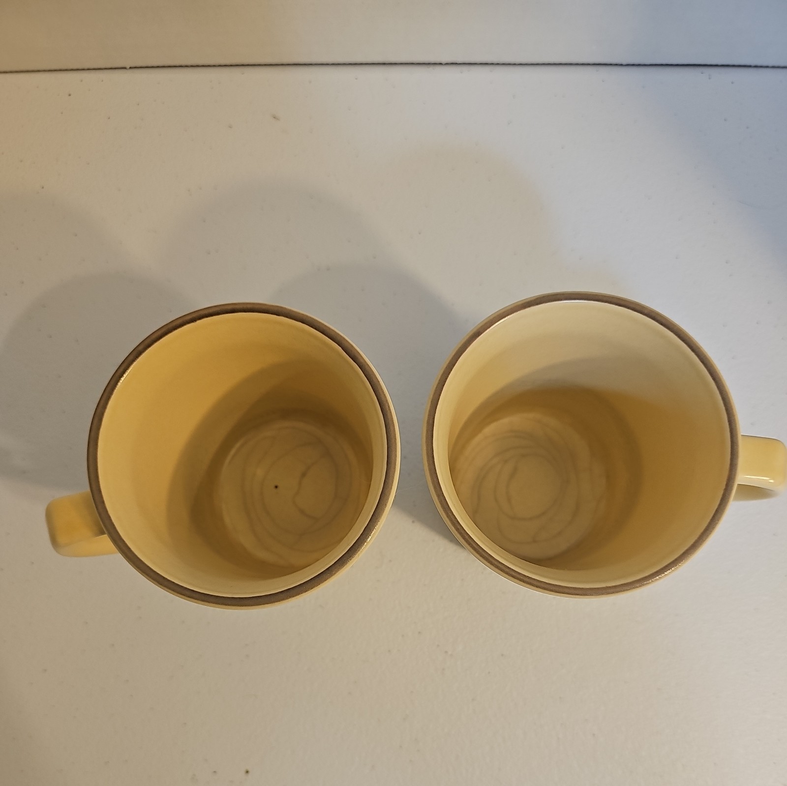 Enjoy your favorite beverages with a touch of nostalgia using this set of 2 Pfaltzgraff Village mugs. Crafted from high-quality stoneware, each mug features the classic Village pattern that adds a warm, mid-century modern vibe to your table setting. The rich brown color and matte finish are indicative of the era's design aesthetics, making these mugs a perfect choice for any occasion. The round shape and comfortable size ensure a pleasant drinking experience, while the old Castle backstamp authenticates their vintage heritage from the 1970s. Whether you're hosting a casual brunch or a chic dinner party, these Pfaltzgraff mugs are a stylish and functional addition to your kitchen collection.