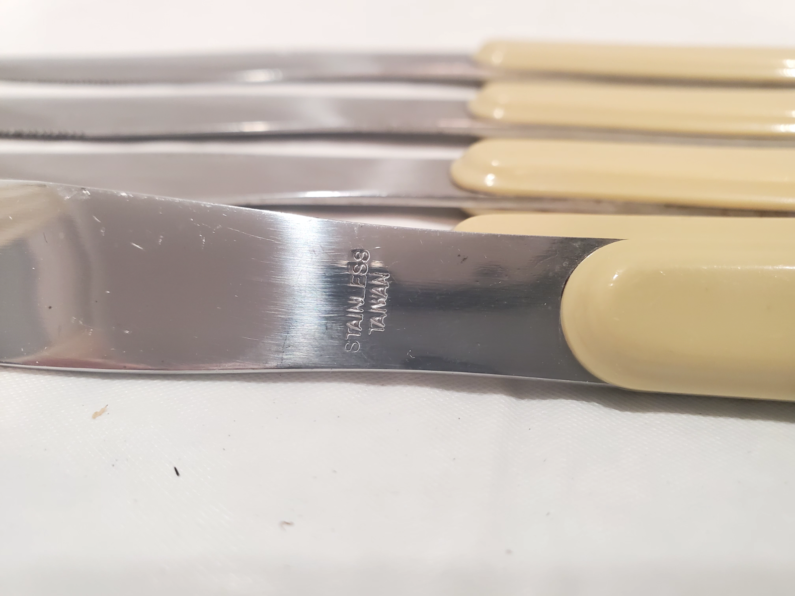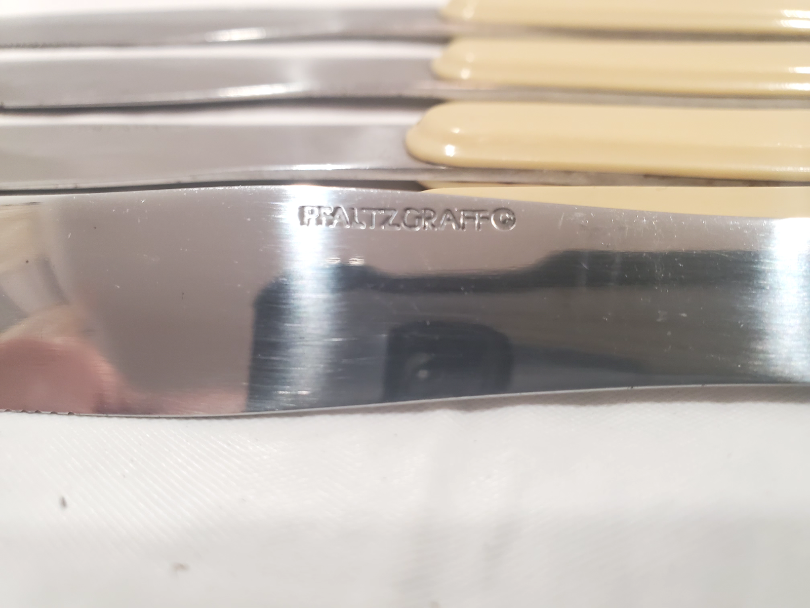 Type:Dinner KnifeColor:BeigeFeatures:ReusableBrand:PfaltzgraffStyle:Vintage/RetroHandle Material:PlasticMaterial:Stainless SteelCountry/Region of Manufacture:TaiwanCare Instructions:Hand Wash Only