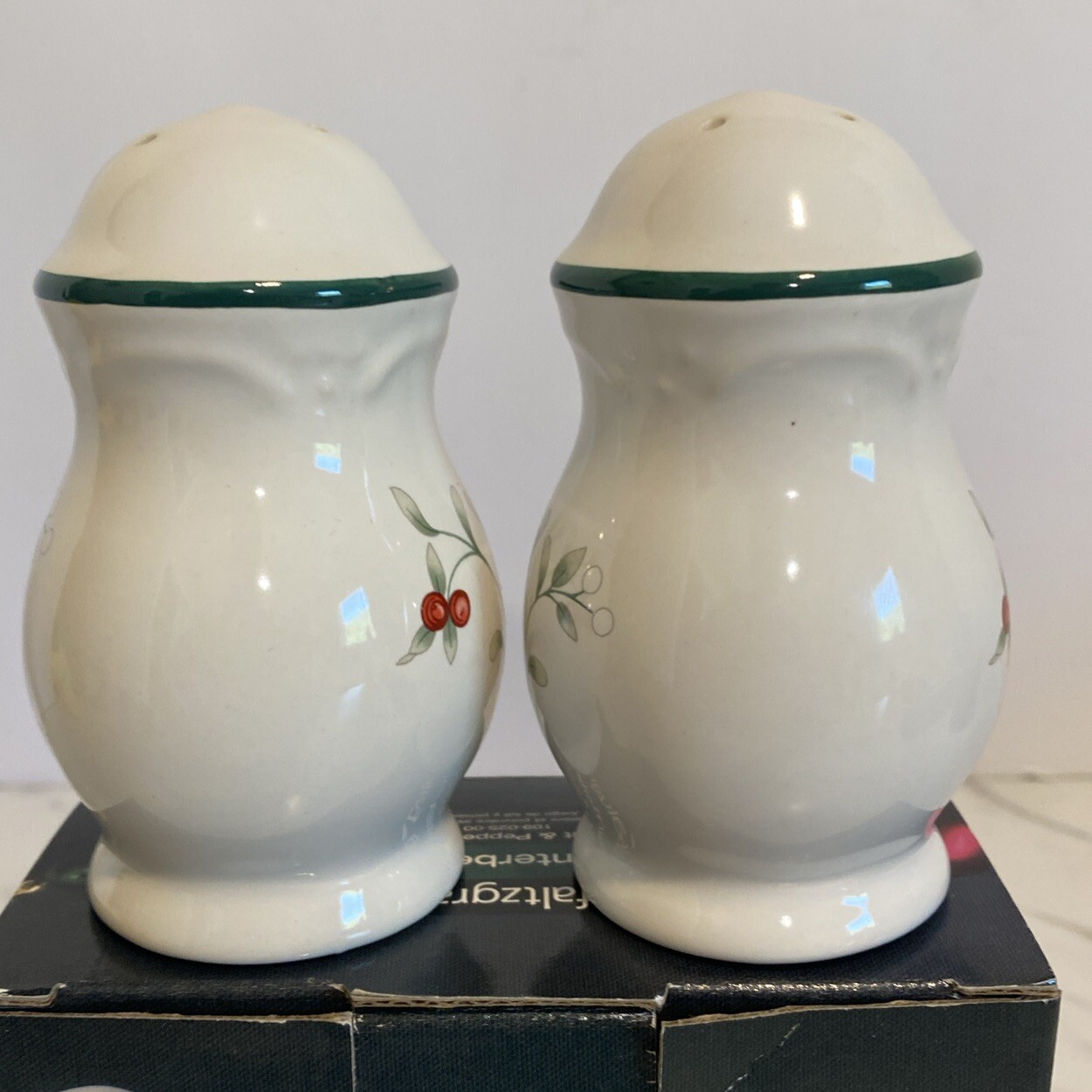 New Pfaltzgraff WINTERBERRY Salt and Pepper Shakers NEW Open Box - Box was opened to inspect for any blemishes and to take photos. The box has some minor scratches as shown in photos but shakers are in mint condition. Thank you for looking and supporting my small business!
