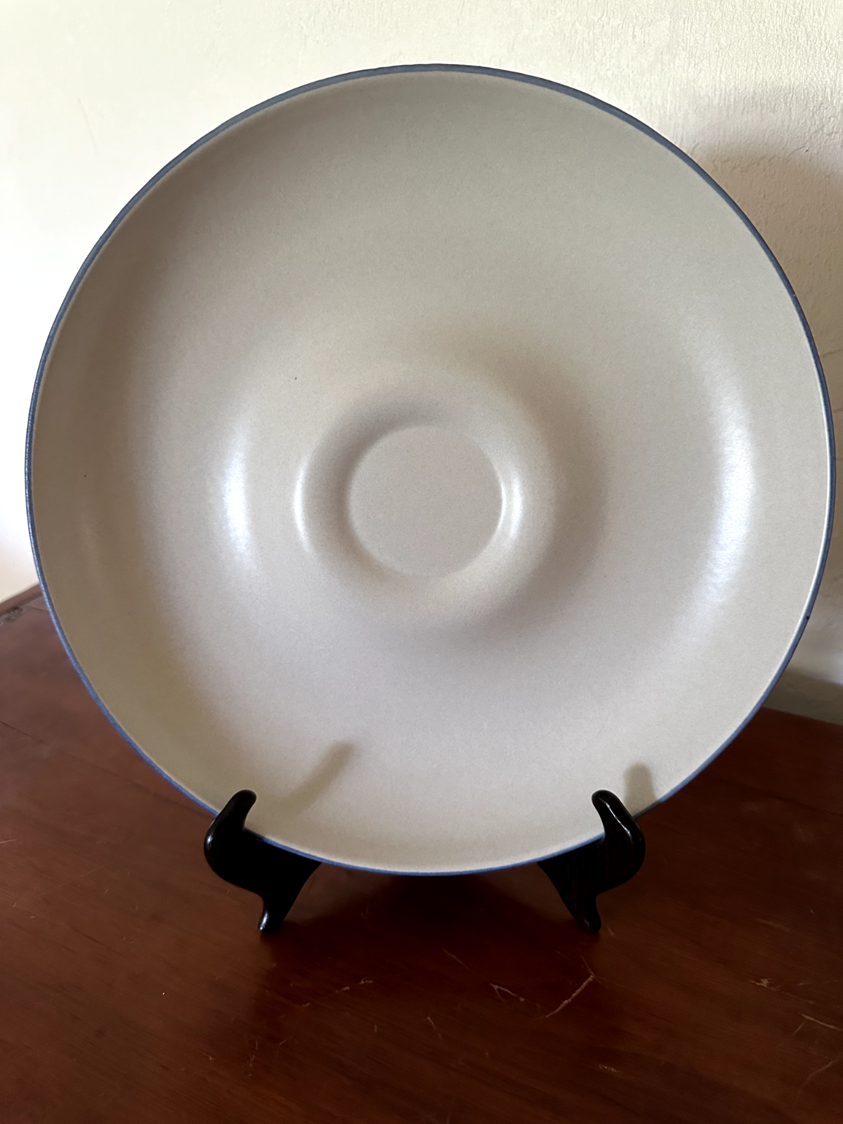 The Pfaltzgraff Yorktowne #180 Chip n Dip Platter is a vintage stoneware piece featuring the classic blue and white pottery production style. This decorative cookware item from the Yorktowne product line is perfect for serving chips and dips, adding a touch of charm to any dining table. With its timeless appeal and high-quality craftsmanship, this Pfaltzgraff platter is a must-have for collectors and those who appreciate traditional, elegant dinnerware.