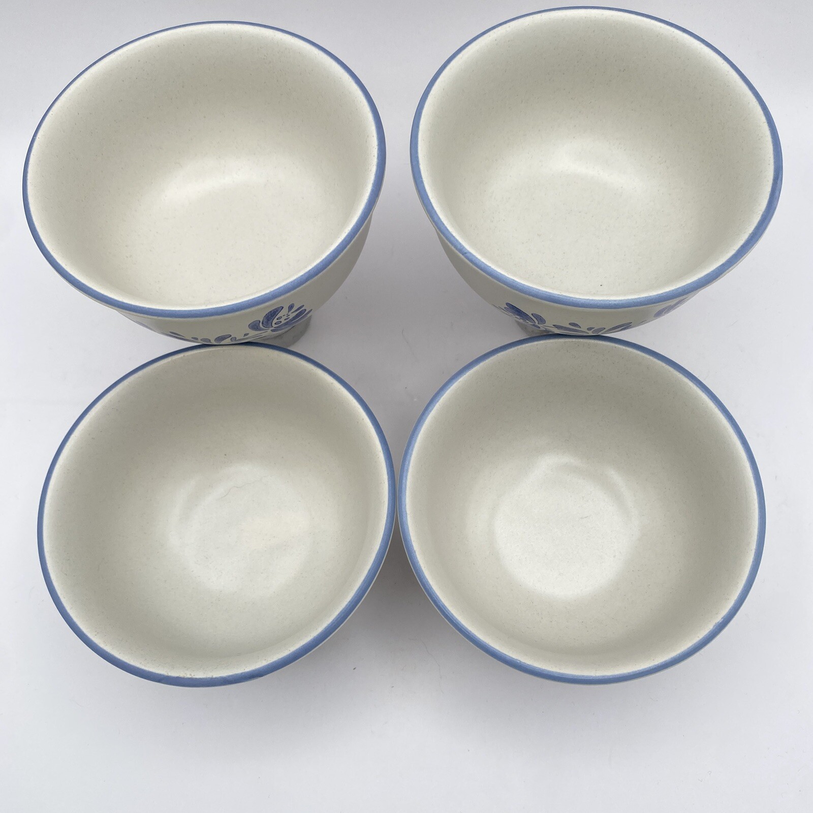 Set of 4 dessert/fruit/snack or side dish bowls in excellent condition. No cracks, chips or crazing. Dishwasher and microwave safe. 8 oz capacity. Pattern color intensity varies - some darker/lighter than others. One has a small manufacturing spot. See photos for conditions. Ships by USPS Ground Advantage. Pfaltzgraff Yorktowne Dessert Bowls Fruit Berry 4.5" 8 oz. Set of 4 Stoneware Set of 4 dessert/fruit/snack/side dish bowls in excellent condition. No cracks, chips or crazing. Dishwasher and microwave safe. 8 oz capacity. Pattern color intensity varies - some darker/lighter than others. One has a small manufacturing spot. See photos for conditions. Ships by USPS Ground Advantage.