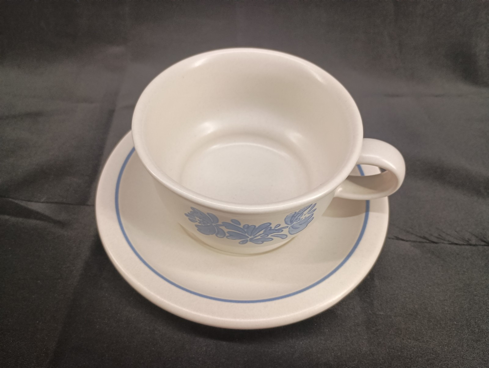 The Pfaltzgraff coffee/tea cup and matching saucer set features a Yorktowne pattern with a matte finish, making it a vintage piece manufactured in 1985. The stoneware set showcases a floral design in ivory and blue colors, embodying a round shape with a handle for convenient use. This original production from Pfaltzgraff in the United States is suitable for hot beverages, adding a touch of charm to any occasion with its timeless appeal. Thank you for visiting my listing today and thank you for your interest in this item! My goal is to have a pleasant transaction resulting in a satisfied customer. I hope any transaction between us leaves you with a feeling of confidence knowing you can trust me and the items I offer here. *Most if not all my listings are set to accept offers. Feel free to send an offer and I will be happy to consider it!! *Please contact me with any questions or concerns and I will be happy to help. *Always examine the photos carefully, and if in doubt, email me with any questions you may have. *Please note that condition statements are offered as a guide only. They will always be somewhat subjective and reflect our opinion, which may not necessarily agree with someone else's opinion. PLEASE READ: I aim to please and I want my buyers to have a positive transaction with me. If you have questions, concerns, or special requests related to any of my items I hope you will contact me so we can work them out to your satisfaction. I sell my items to give you a great item at a decent price while making a little profit at the same time. If you feel the item you are interested in is too pricey do not hesitate to send me a fair offer and I will consider it. My goal is to satisfy your needs and mine so both parties can benefit. SHIPPING: If you prefer a different shipping method or company please contact me and I will do all I can to make that happen. If you have concerns or requests about the packaging of your item contact me and I will do all I can to accommodate them. Shipping costs are based on location in each state or country, the costs always differ. After I have received your payment I will ship your item out within 3 business days or less excluding weekends and holidays. BEFORE PURCHASING & BIDDING: **Please see all the pictures. I do not have great photography skills but I try to get the most accurate photos I can. If you are unsure about something you see in a photo contact me so I can do what I am able to answer your concern about the item. **I cannot stress enough that if you have any questions or concerns please contact me before purchasing and bidding. Communication can solve so much. **As a customer myself, I understand the meaning of customer satisfaction and my goal is to have nothing but satisfied customers. If you are not unsatisfied with your purchase I ask that you please contact me so I can take care of your issue. My goal is for you to be 100% satisfied. INTERNATIONAL BUYERS WELCOMED - PLEASE NOTE: I welcome International buyers! Please be aware that any custom/duties/taxes that the parcel might incur once it is out of the USA are the responsibility of the buyer. Please check with your country's customs office to determine what these additional costs will be prior to bidding or buying. Please refer to the eBay Site Map for more information if needed.