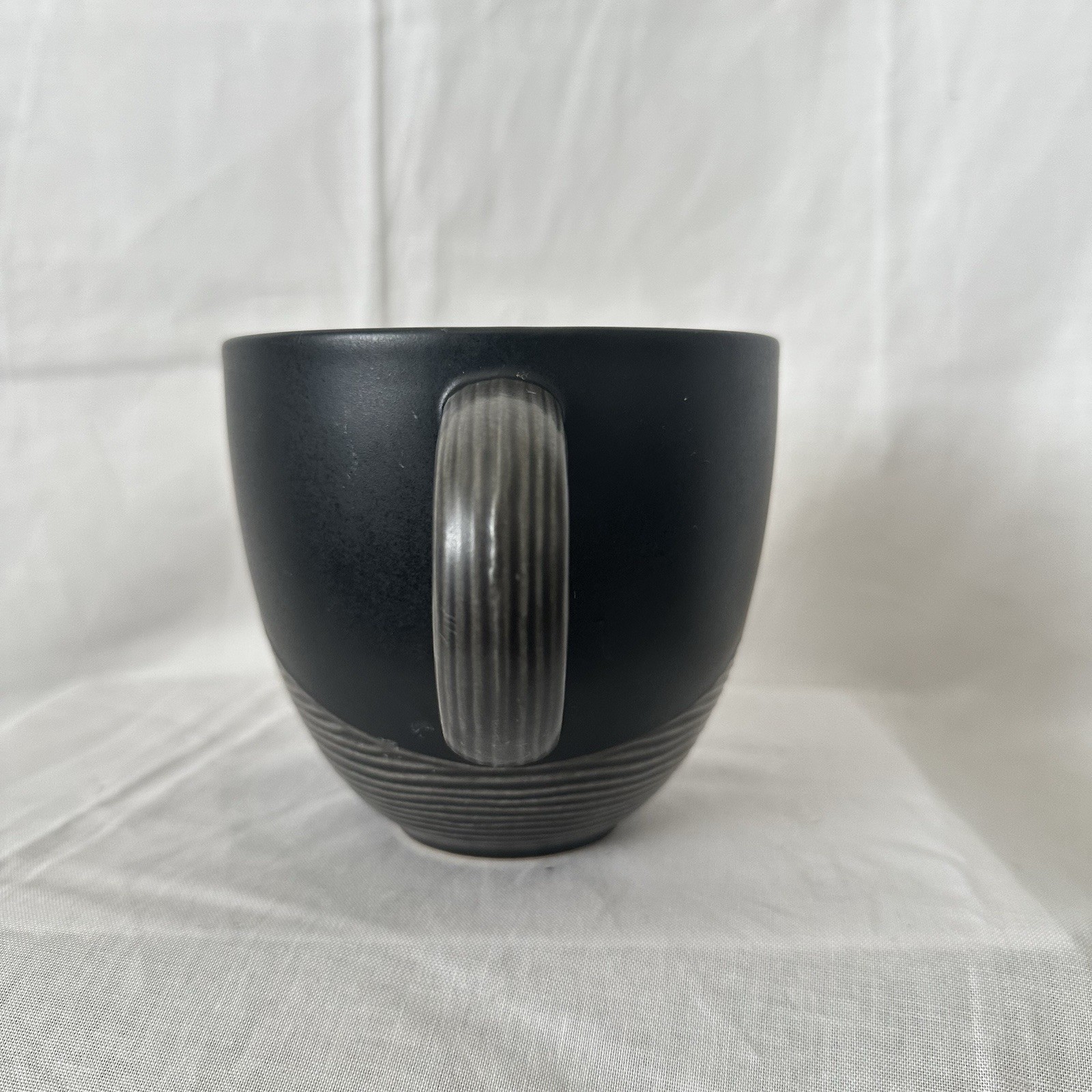 The Pfaltzgraff Retired Night Surf Pattern 18oz. Single Coffee Mugs are a black coffee mugs from the Night Surf product line. Made in Thailand, these decorative cookware pieces are perfect for serving coffee in style. The mugs are not signed and are not handmade, making them a convenient and elegant addition to any kitchen or dining area.