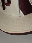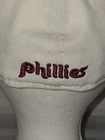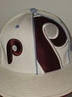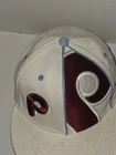 Show off your love for the Philadelphia Phillies with this officially licensed New Era cap. The red hat features the team's logo prominently on the front left and a larger team logo on the front right and is perfect for any fan. Made for men, this fitted hat is a size 7 1/4 and is ideal for regular season games. The Cooperstown Collection cap by 59fifty is a must have for any Major League (MLB) baseball fan. Hat is pre-owned and does need a light cleaning. Discoloration on the upper brim as noted in pictures.